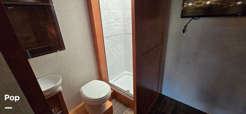 Entertainment and connectivity are second to none, featuring a high-definition TV on a swivel mount in the main cabin, a cab-over TV for the bunk area, and an exterior TV with speakers under the 14-foot power awning -- perfect for outdoor movie nights or game day gatherings.