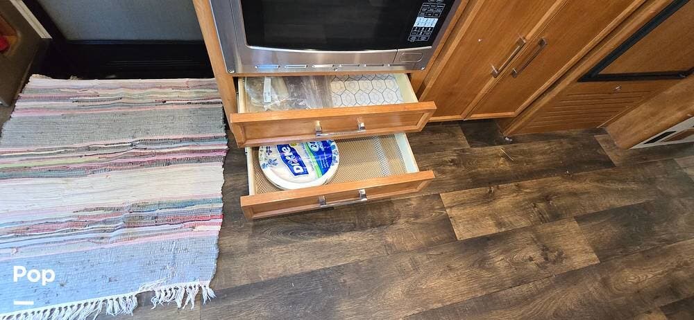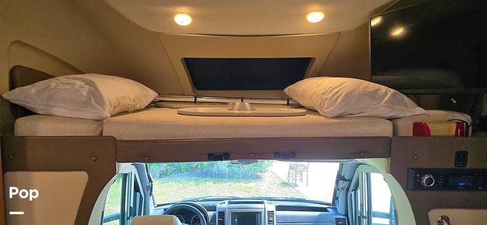 Above the cockpit, the coach features a full-size bunk over the cab with a built-in ladder and safety net--perfect for guests, kids, or extra storage. This area also includes its own TV hookup and privacy curtain.