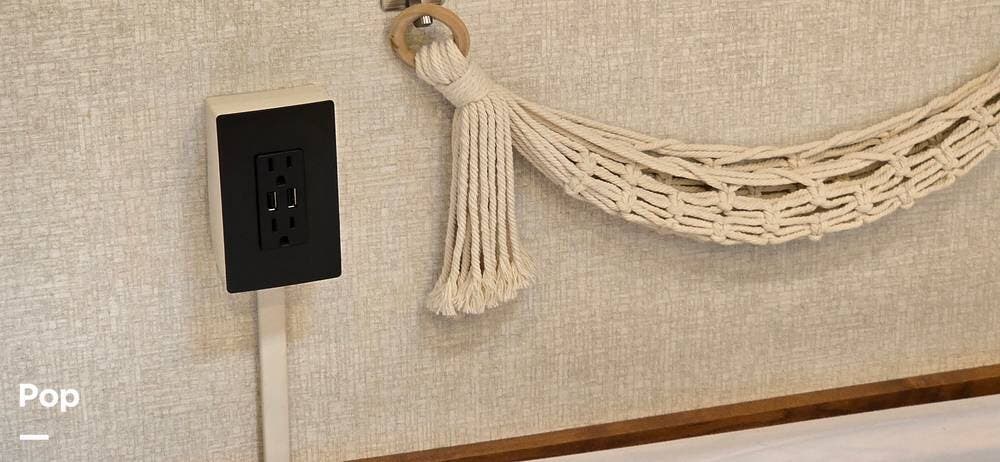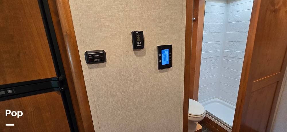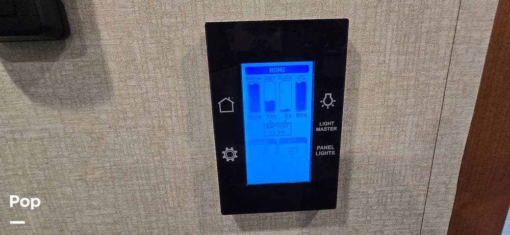The coach features the Spyder multiplex system, central command touchscreen, USB/110V outlets throughout, and a 1,000-watt inverter for AC power while off-grid. It's pre-wired for solar, giving you flexibility for future upgrades.
