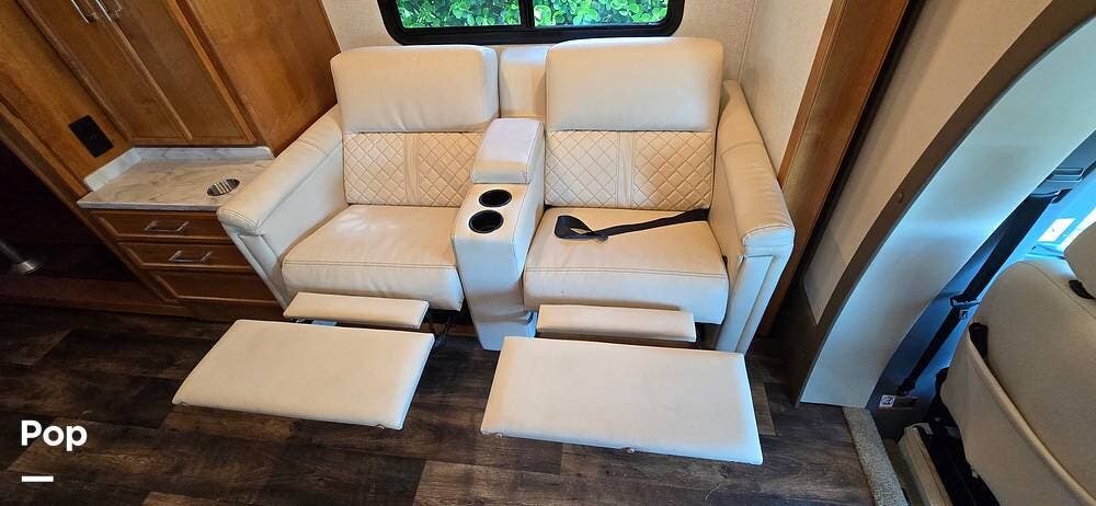 The spacious living area features dual power reclining theater seats--perfect for relaxing after a long day.
