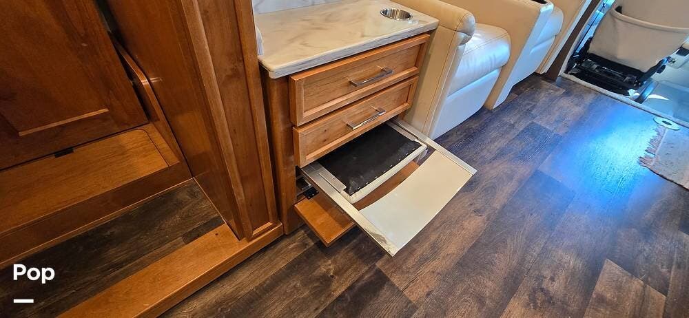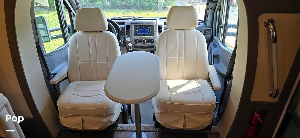 The cockpit is designed for safety, comfort, and convenience, making long drives effortless. Driver and passenger seats are upholstered in Ultraleather and feature swivel bases, allowing them to become part of the living area when parked.