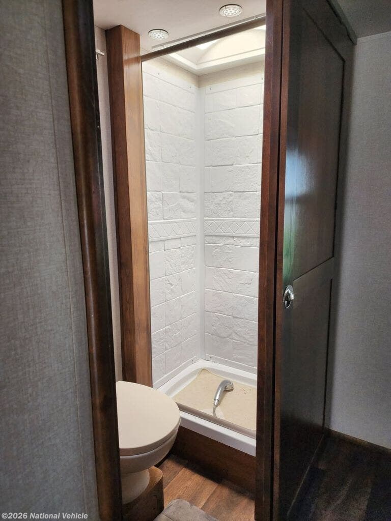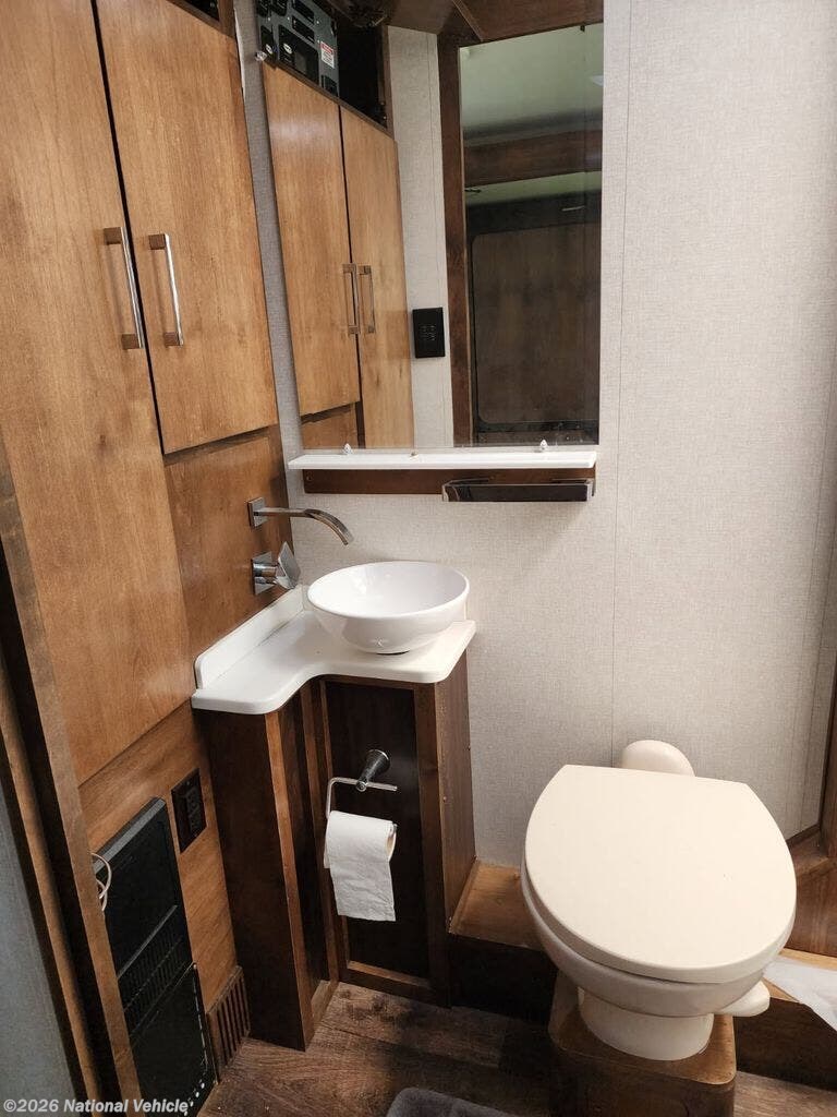 At the rear, a large private bathroom provides exceptional room and convenience, featuring a spacious shower, modern fixtures, and ample storage?delivering the comfort of home on the road.