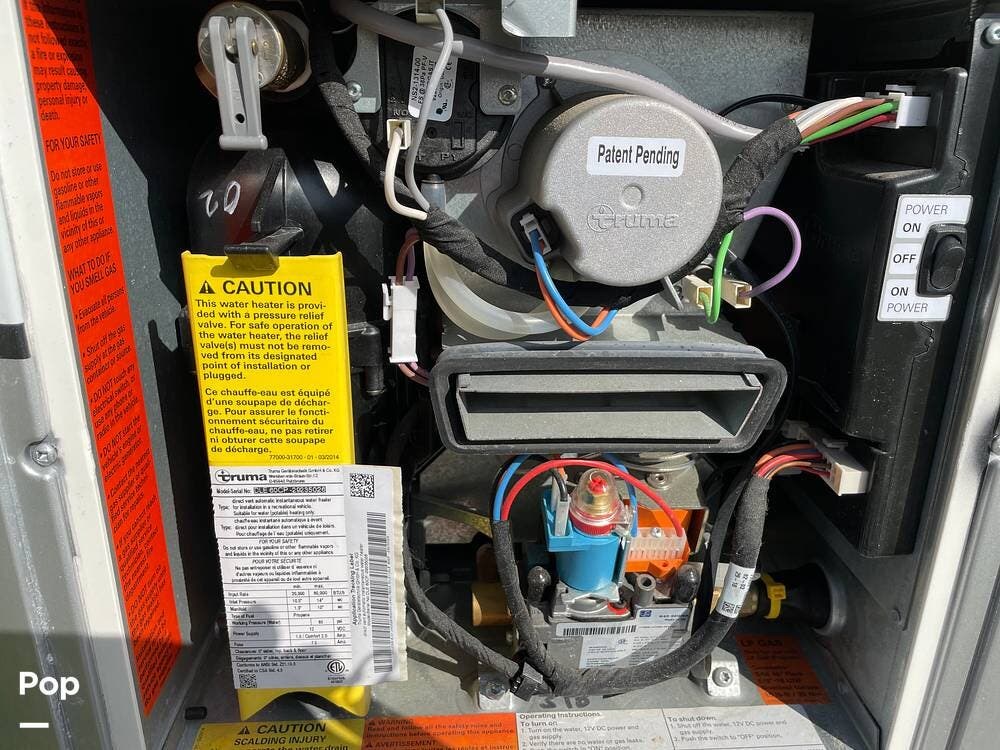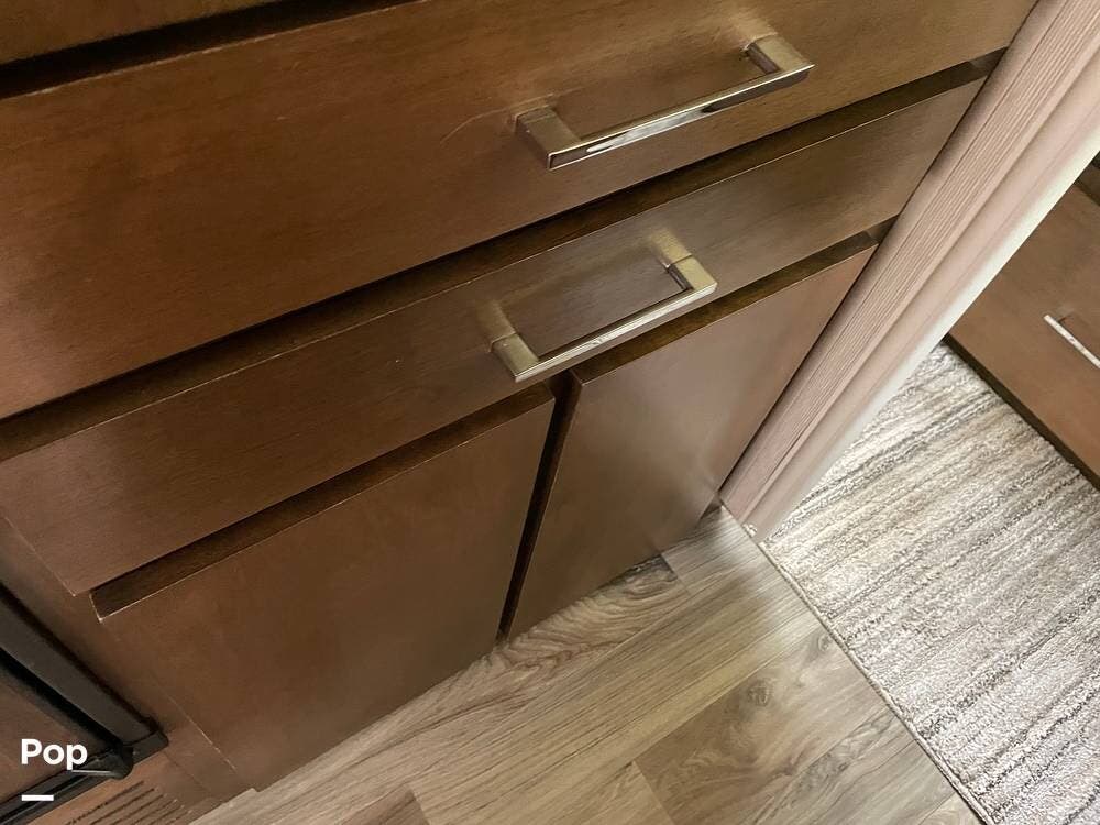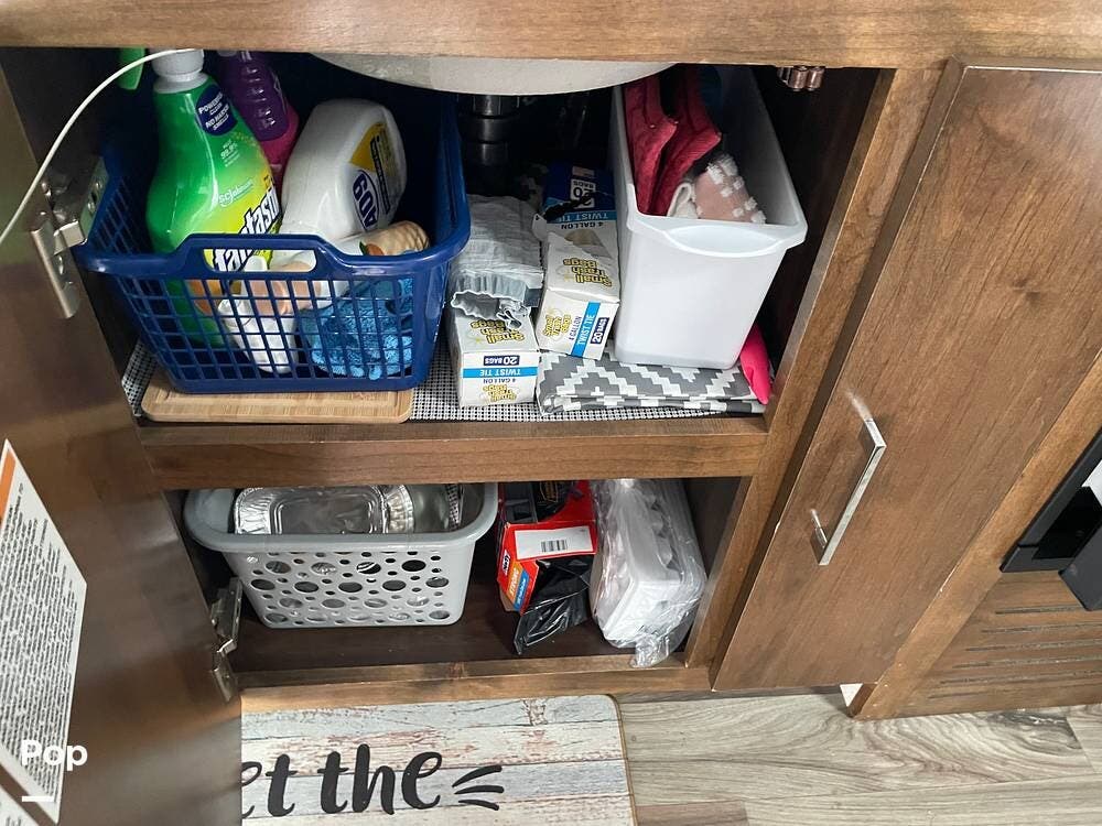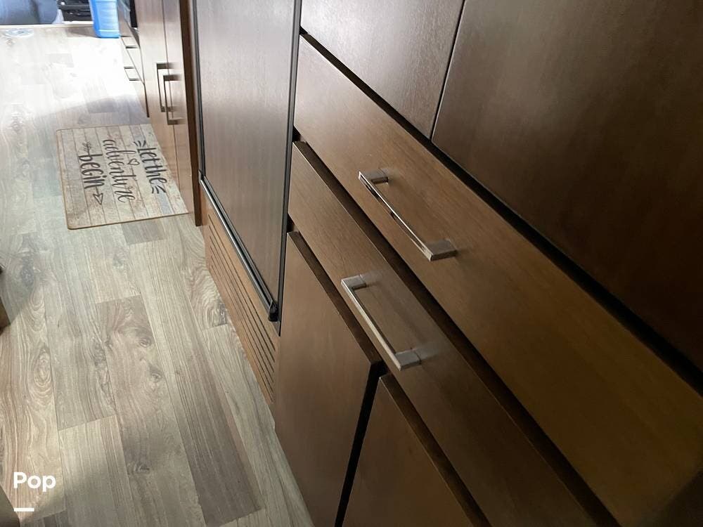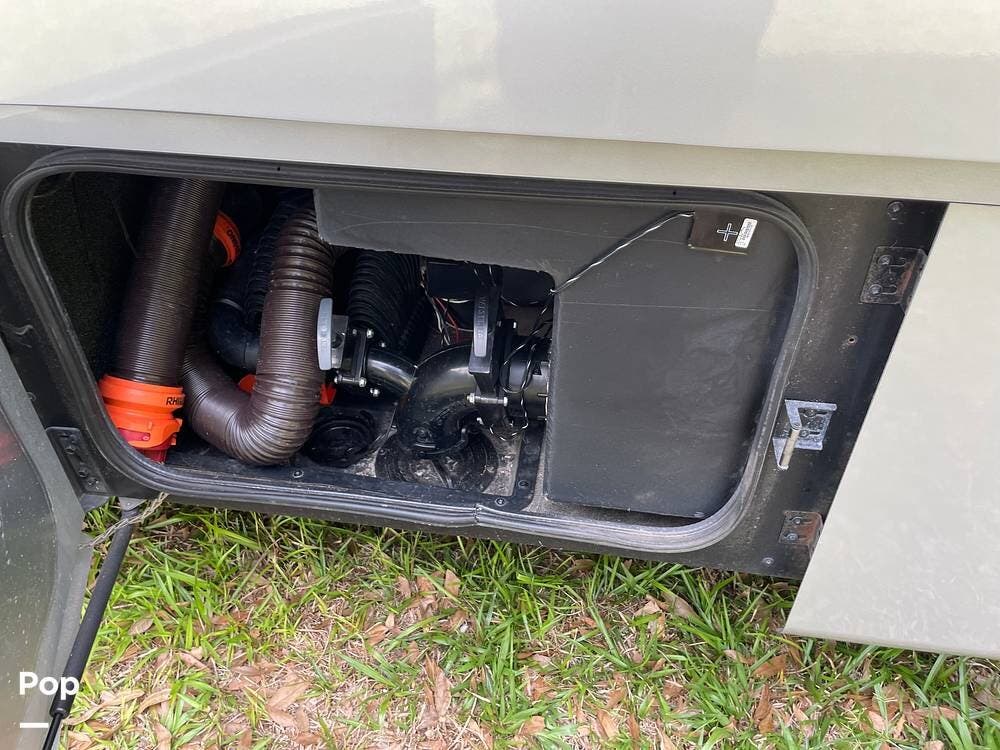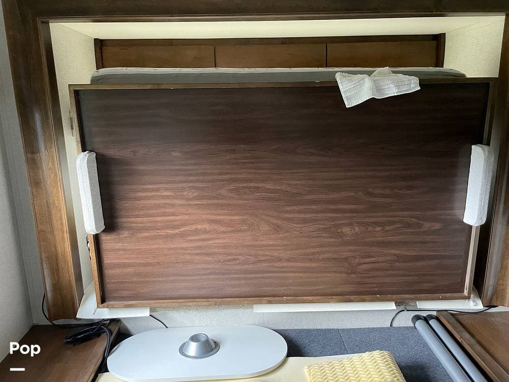 Outside, the RV has another flat-screen TV under the 14-foot awning and a propane hookup for your BBQ. There is ample storage in this RV, including a pass-through area.