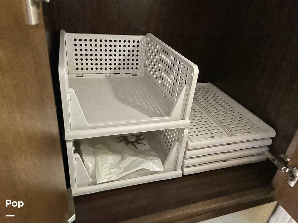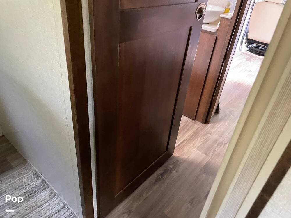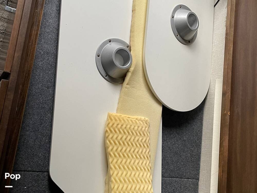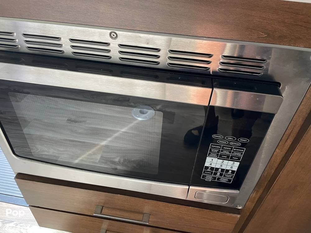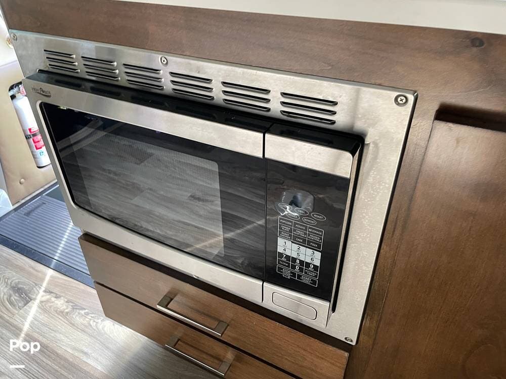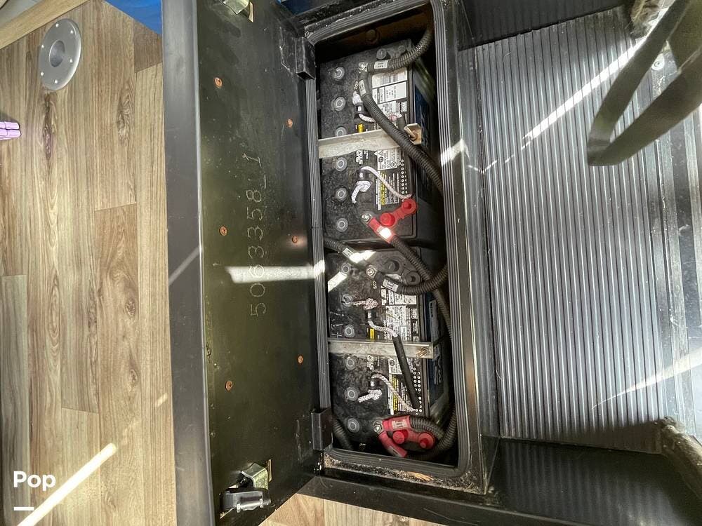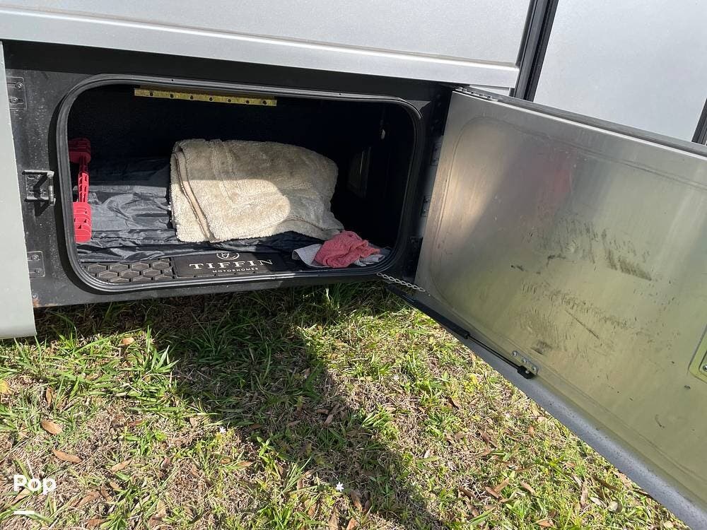 Outside, the RV has another flat-screen TV under the 14-foot awning and a propane hookup for your BBQ. There is ample storage in this RV, including a pass-through area.