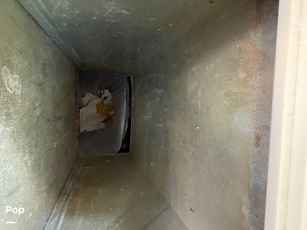 Past the kitchen, the hallway leads to the bathroom and bedroom. Here, the control panel for the tankless water heater, solar monitor, and generator is located.