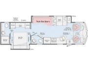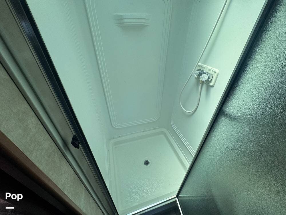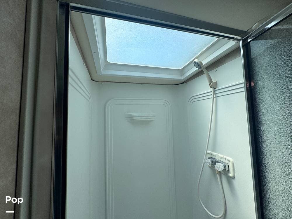 One of the highlights of this model is the bath-and-a-half layout. The main full bathroom is located at the rear of the coach and features a 3-foot square shower, a vanity with a medicine cabinet, and a foot-flush toilet. The half-bath is located mid-coach, providing extra convenience for guests or when on the move. Both bathrooms are spacious and well-lit, designed with Winnebago's commitment to quality and function.