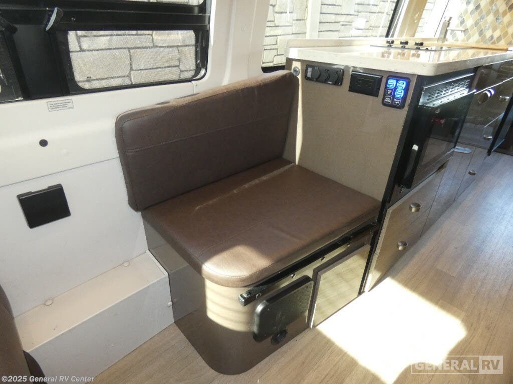 Experience the open road like never before with the 2019 Winnebago Era 70B. This sleek and stylish RV, built on the reliable Mercedes-Benz Sprinter 3500 chassis, combines luxury with functionality. Its compact design, stretching just over 24 feet, makes it perfect for both city streets and scenic routes. The heart of the Era is its versatile living space, featuring a convertible sofa bed that offers a cozy retreat for two. The front living area, with its movable pedestal table, is perfect for dining or relaxing, while the center kitchen boasts a three-burner cooktop and a mid-size refrigerator, ensuring you have everything you need to whip up your favorite meals on the go. The Era 70B is designed with convenience in mind, featuring a wet bath with bi-fold doors and ample storage options, including an exterior storage compartment and a shirt closet. Enjoy the great outdoors under the expansive 16.3 ft. powered retractable awning, or take advantage of the diesel engine's impressive 5000-pound towing capacity to bring along your favorite toys. Whether you're embarking on a weekend getaway or a cross-country adventure, the Winnebago Era 70B is your ticket to travel freedom. For more details and to see this beauty in person, visit your nearest General RV Dealership.