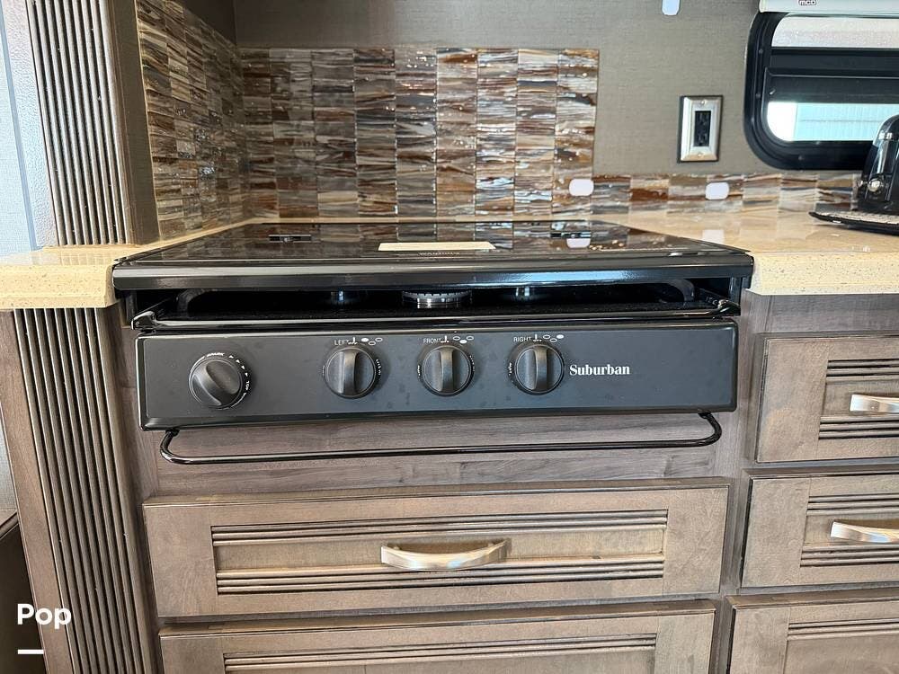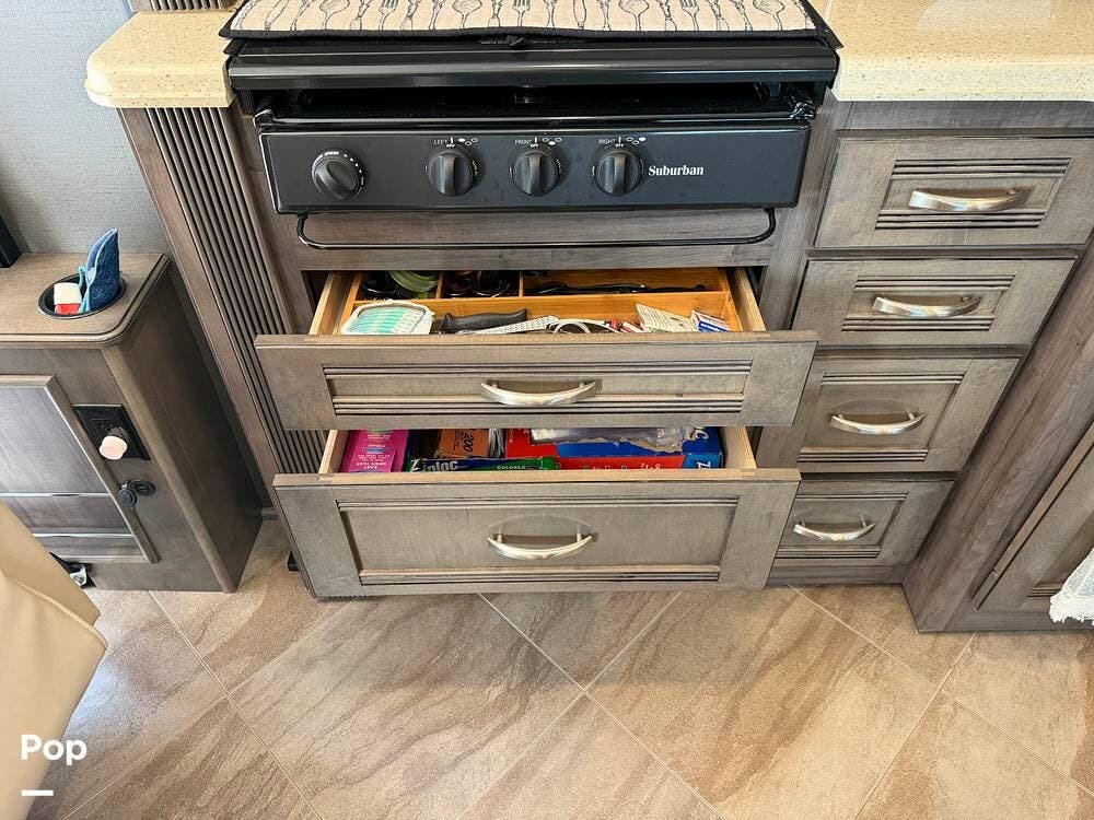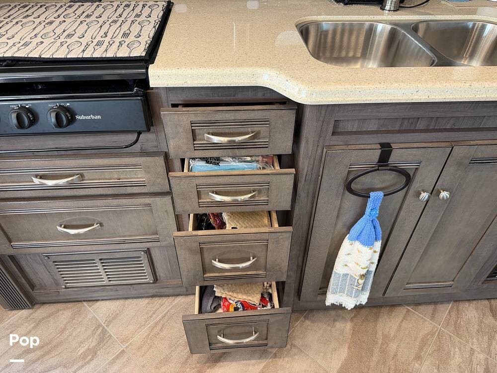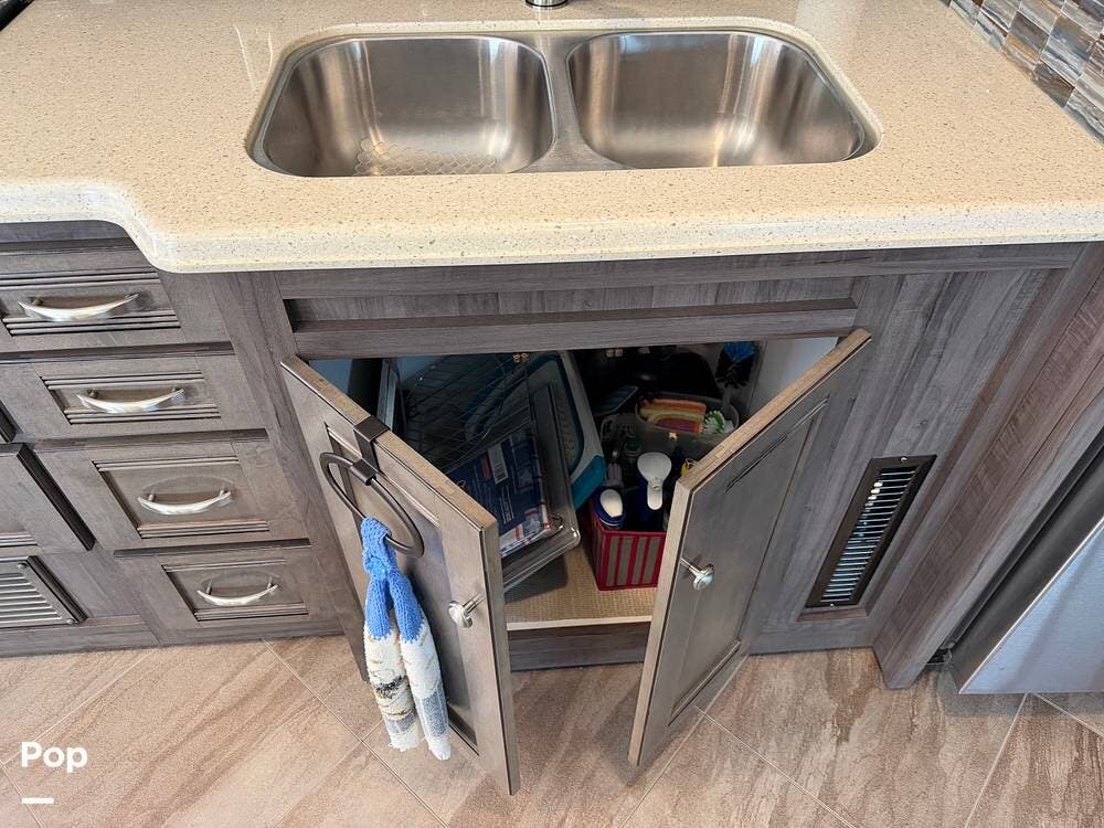 When you enter this almost-new RV, you will notice the very open floor plan. There are 3 slides, including a full-body slide on the driver's side. It makes for a spacious living area.