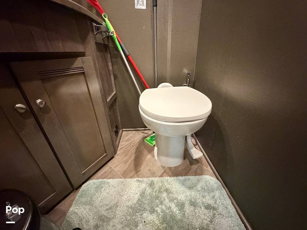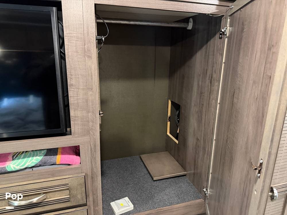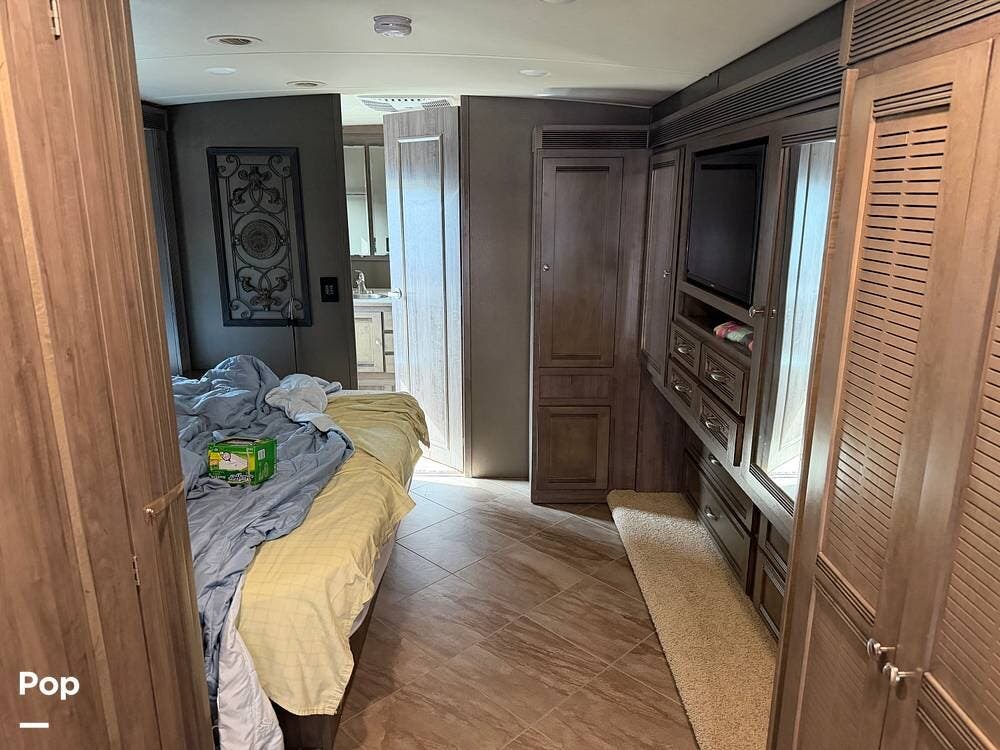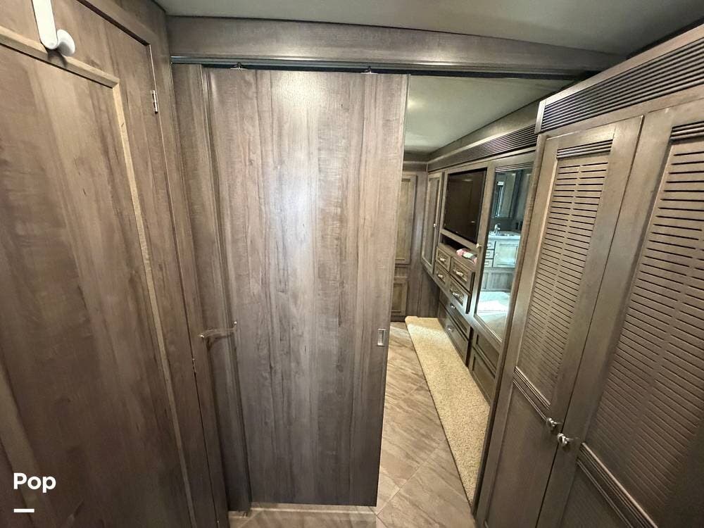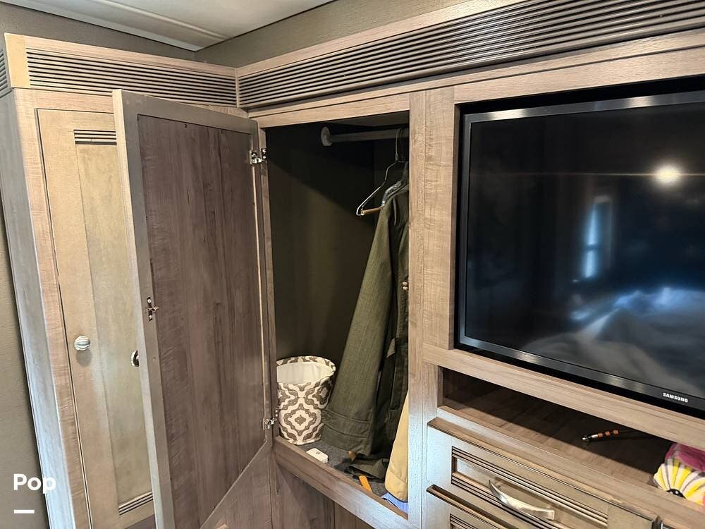The master has a lot of room and storage. It has a full private bath. King bed and a closet with the washer and dryer. This Rv is setup with a insta hot water heater, so you will not run out of hot water.