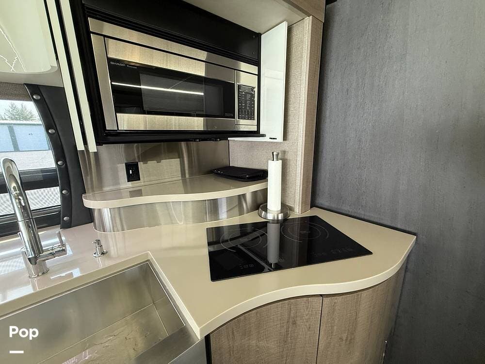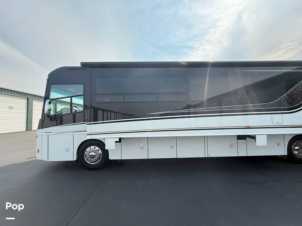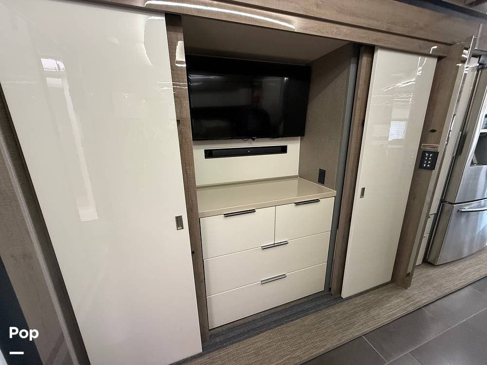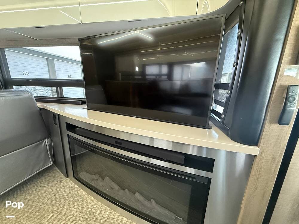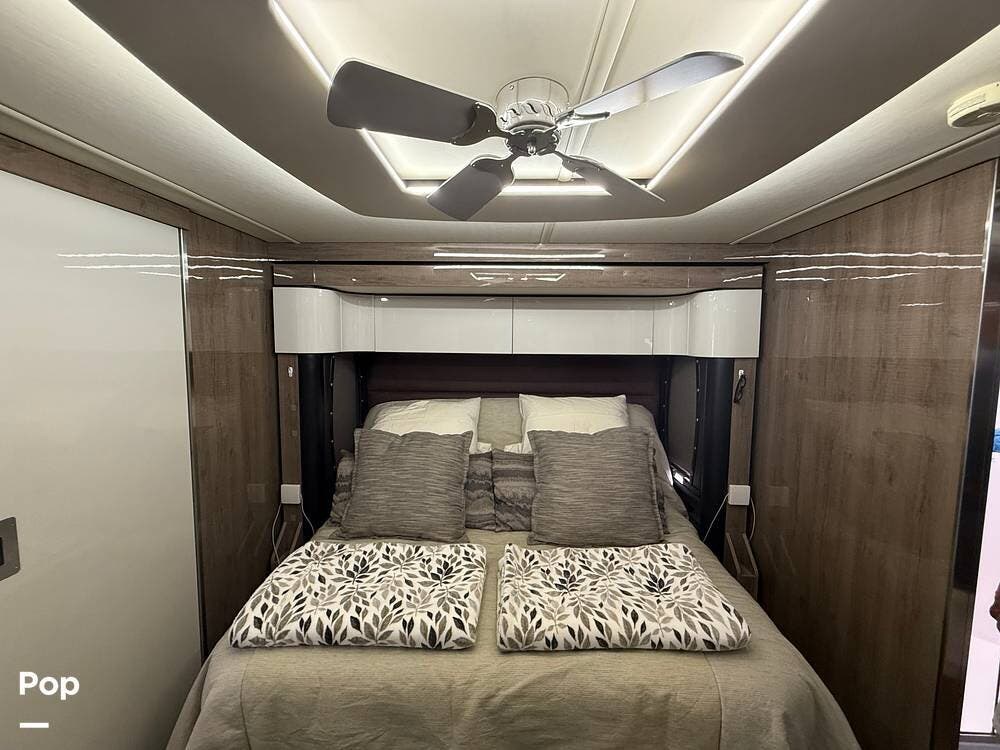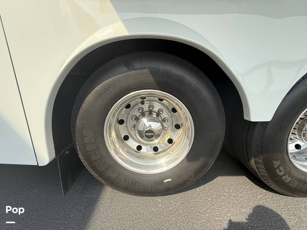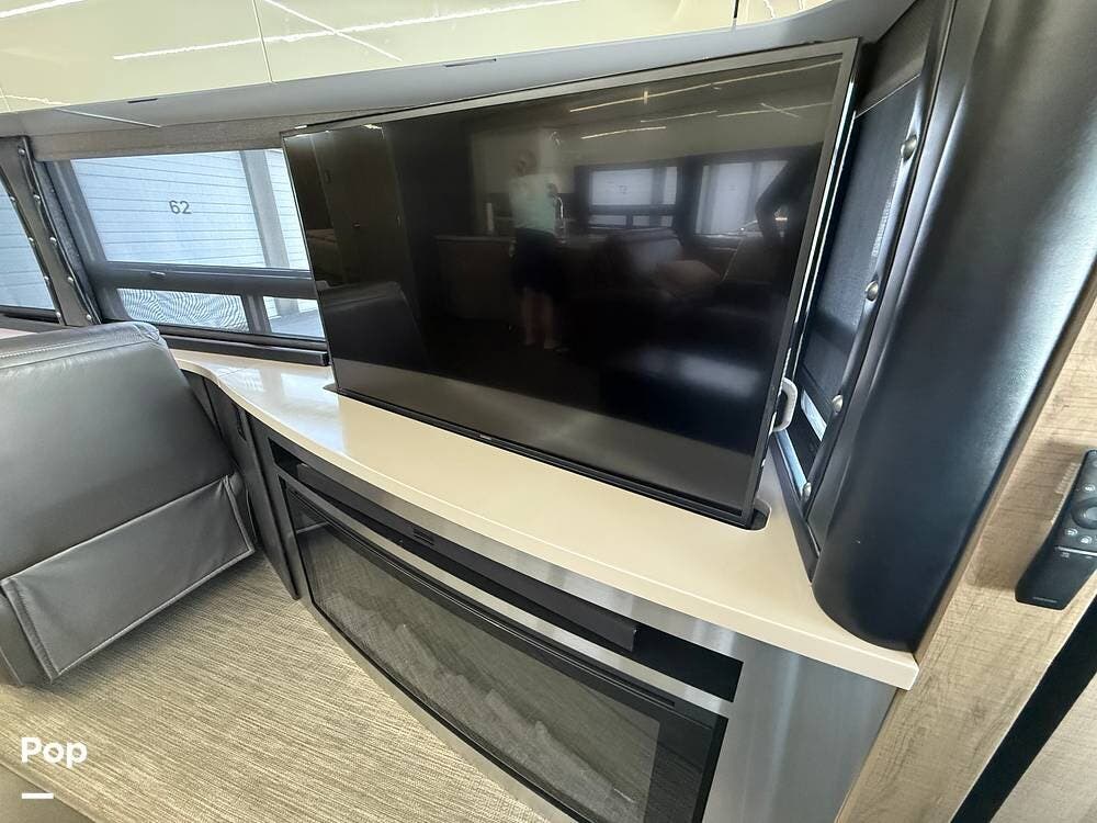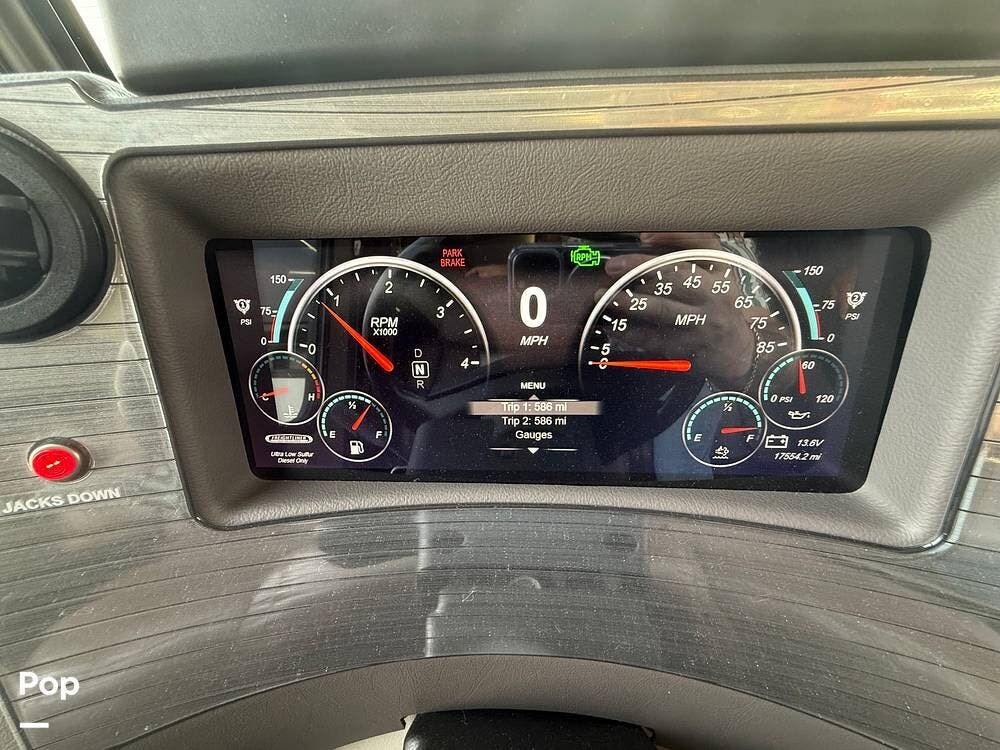 Equipped with a backup camera, side view cameras, GPS, and power side mirrors with defrost, navigation, and safety come standard. Other features include a tank monitoring system, a 100-watt solar panel, a 2,800-watt inverter, automatic leveling jacks, keyless entry, and satellite prep.