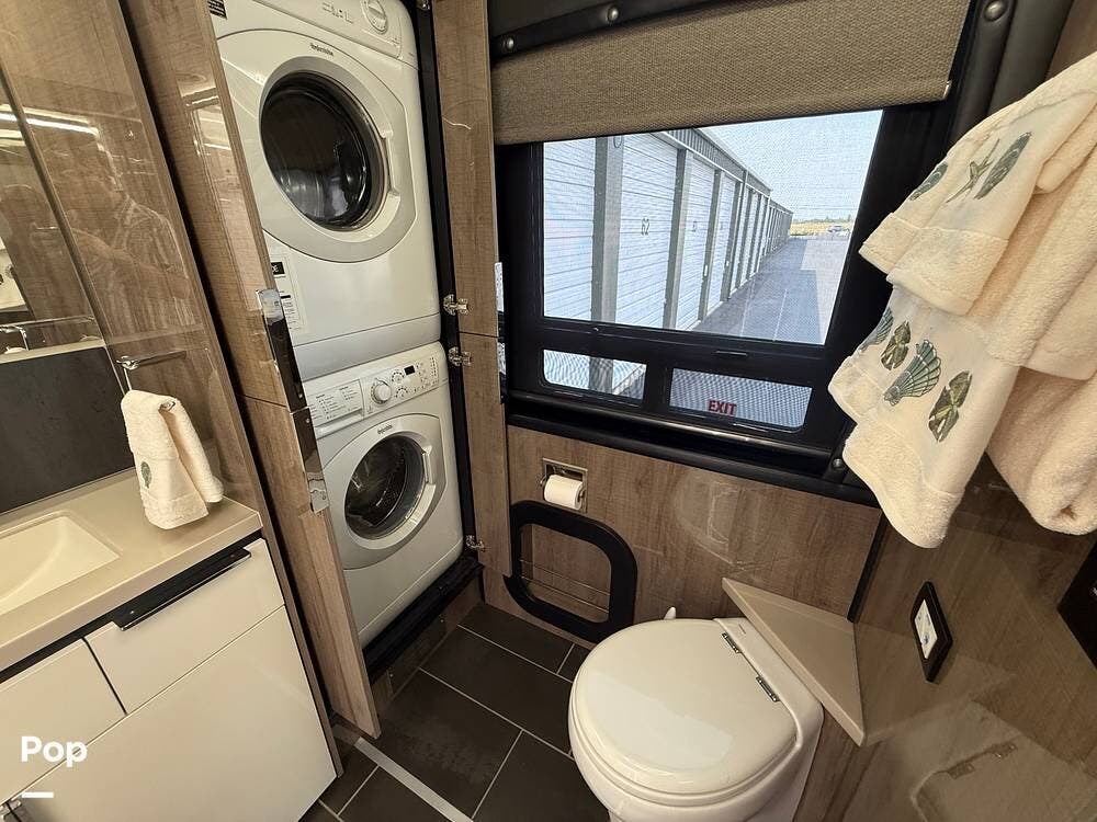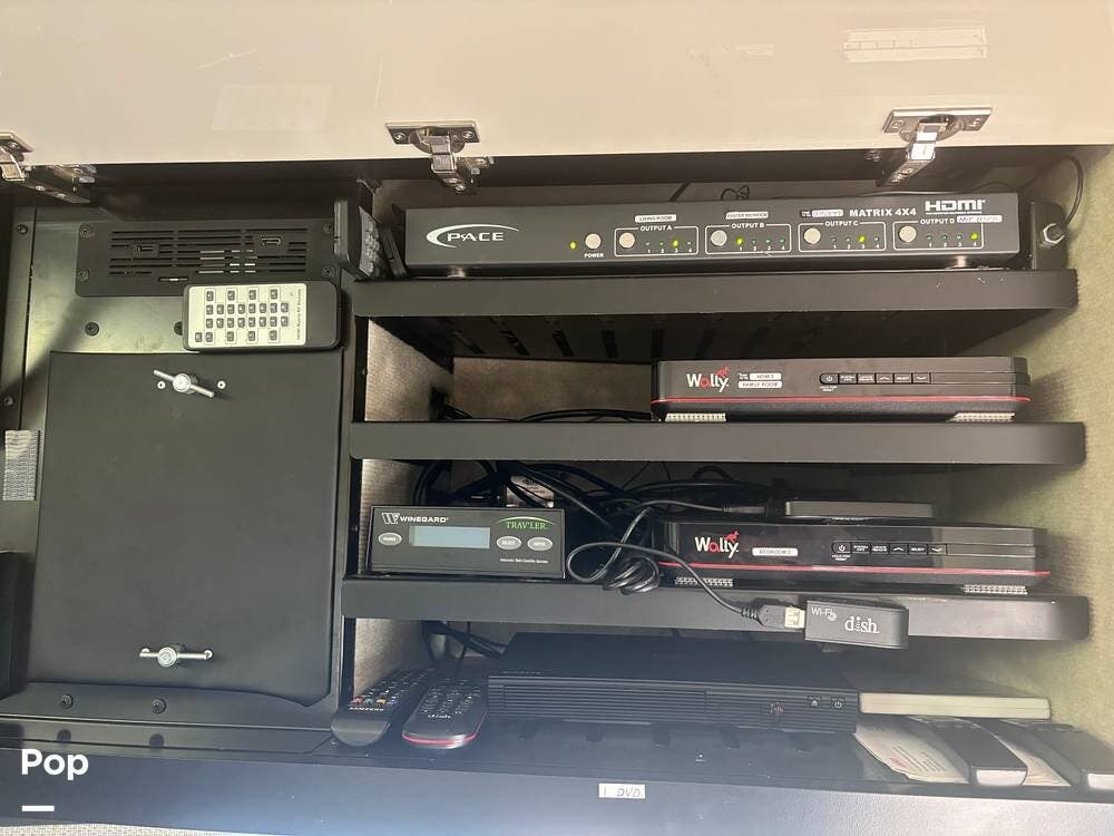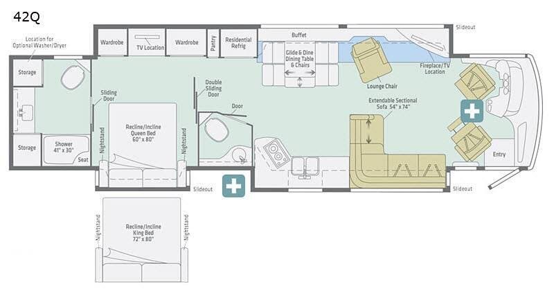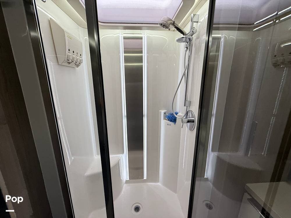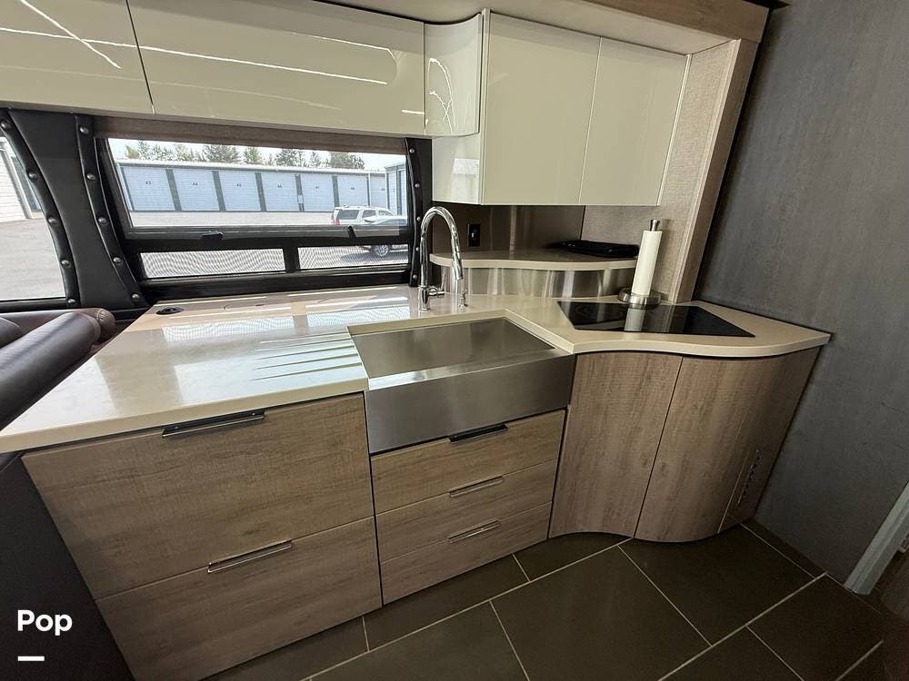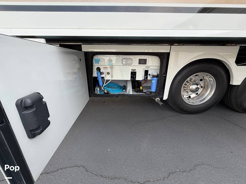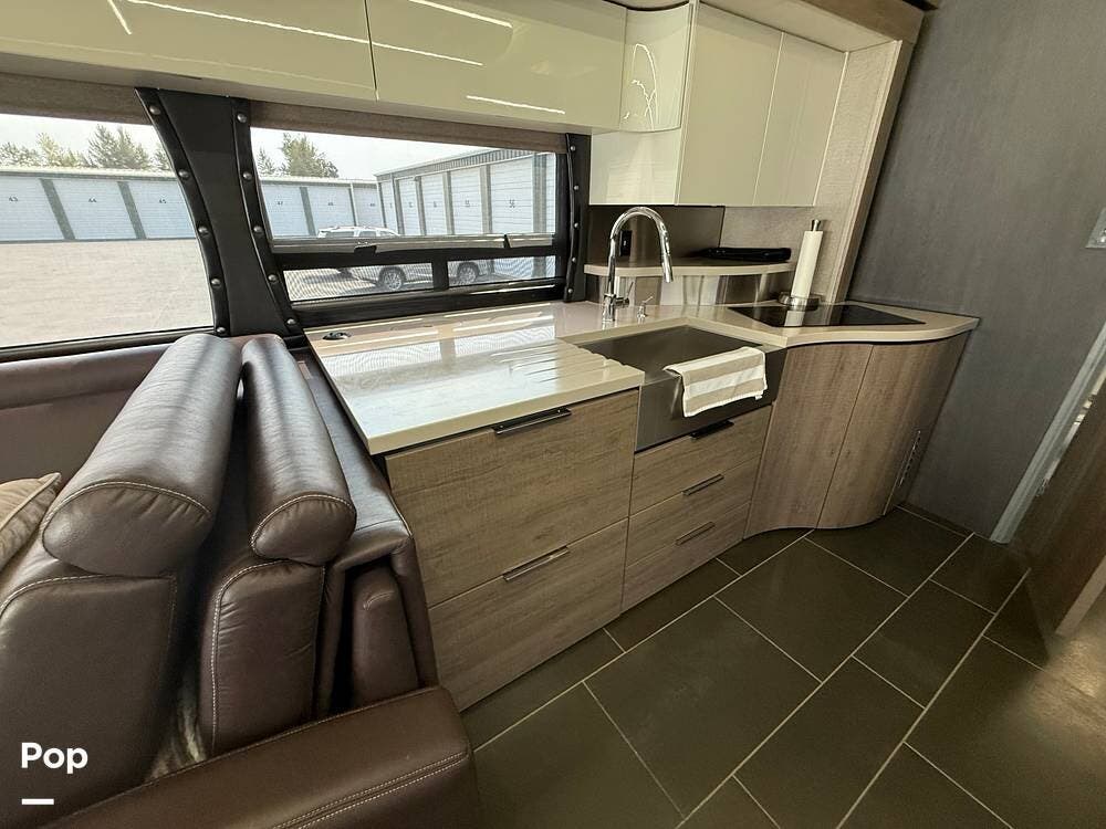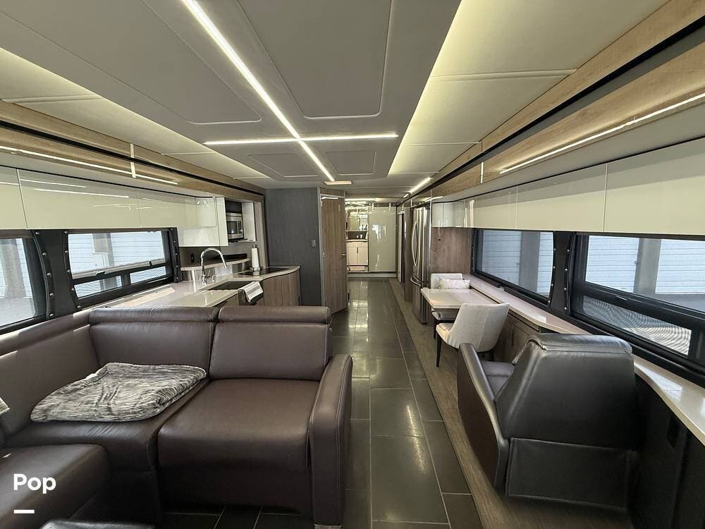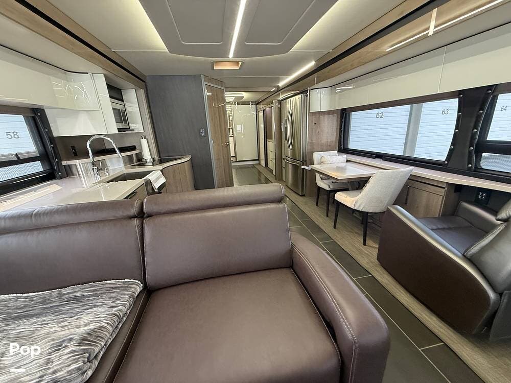 Equipped with a backup camera, side view cameras, GPS, and power side mirrors with defrost, navigation, and safety come standard. Other features include a tank monitoring system, a 100-watt solar panel, a 2,800-watt inverter, automatic leveling jacks, keyless entry, and satellite prep.