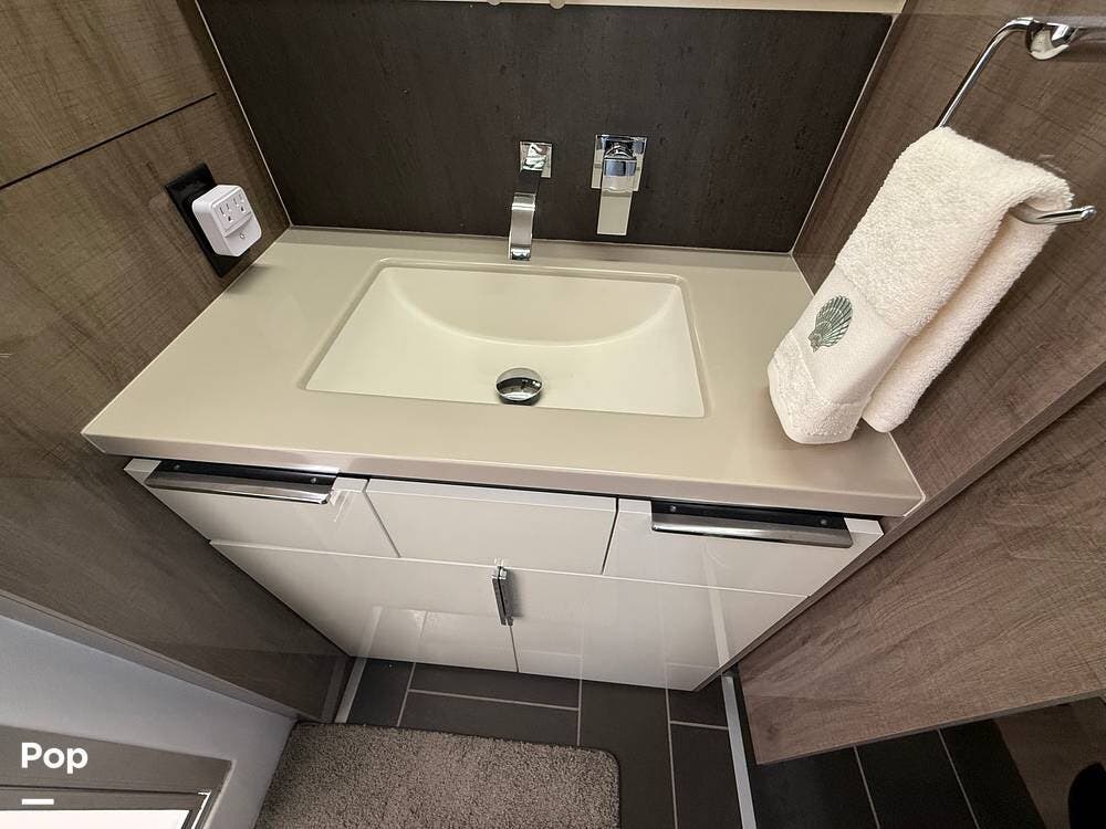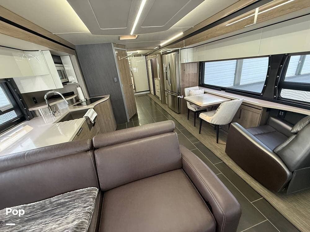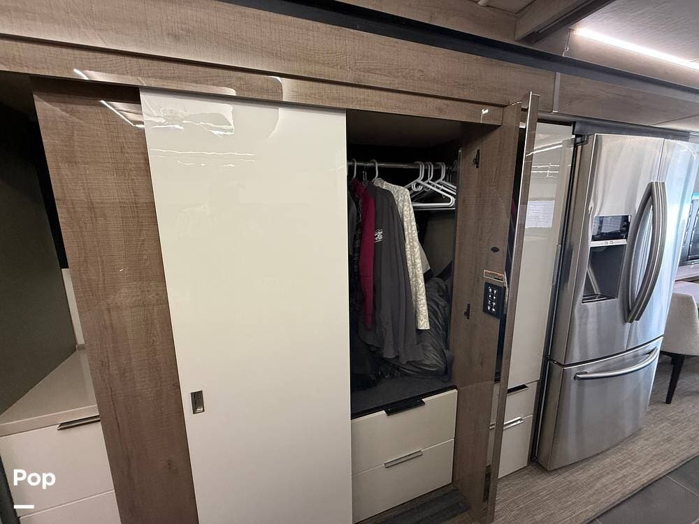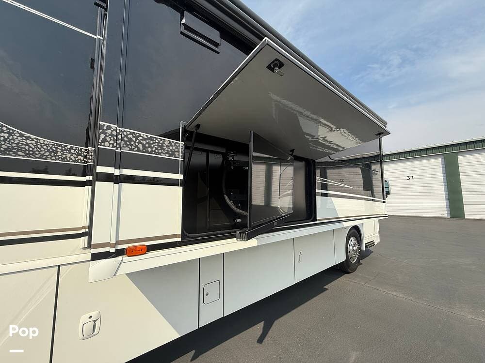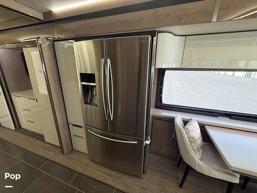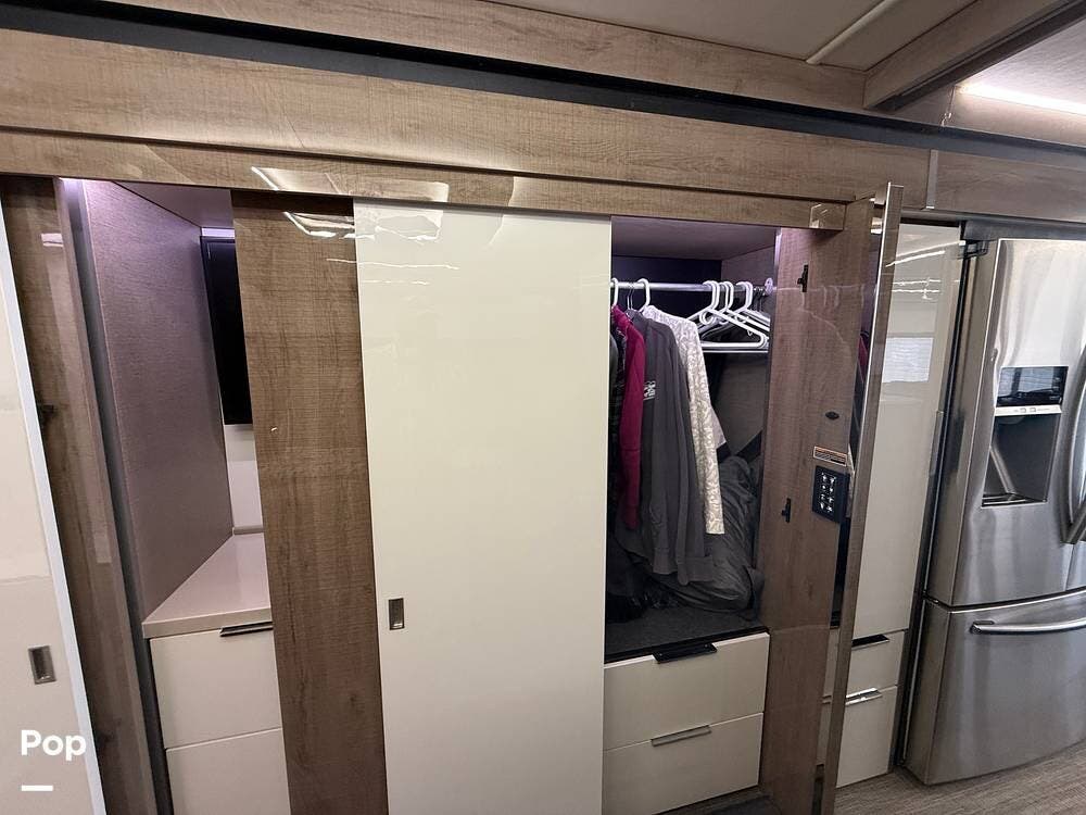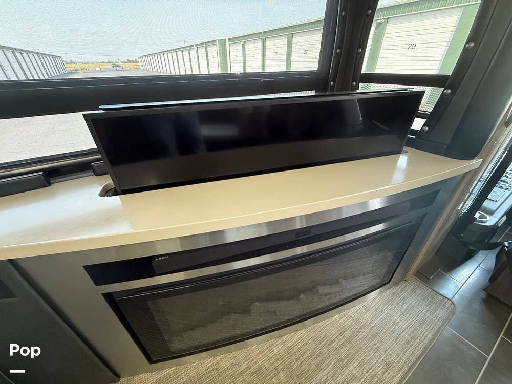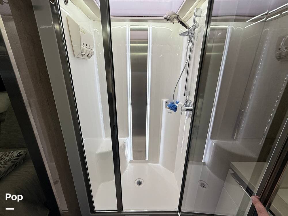 Equipped with a backup camera, side view cameras, GPS, and power side mirrors with defrost, navigation, and safety come standard. Other features include a tank monitoring system, a 100-watt solar panel, a 2,800-watt inverter, automatic leveling jacks, keyless entry, and satellite prep.