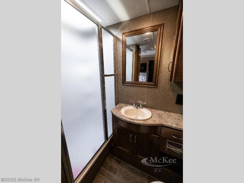When you travel in this Intent Class A Gas motorhome, you are traveling in an exceptional RV that contains all of the amenities you want and need, plus many extra. The fully stocked kitchen, which is located on the full-wall slide out, contains a residential refrigerator that gives you the space you need to keep your perishable items from spoiling, and everyone will love gathering together each evening in the warm summer air as you party underneath the 22' electric awning with LED lights.
