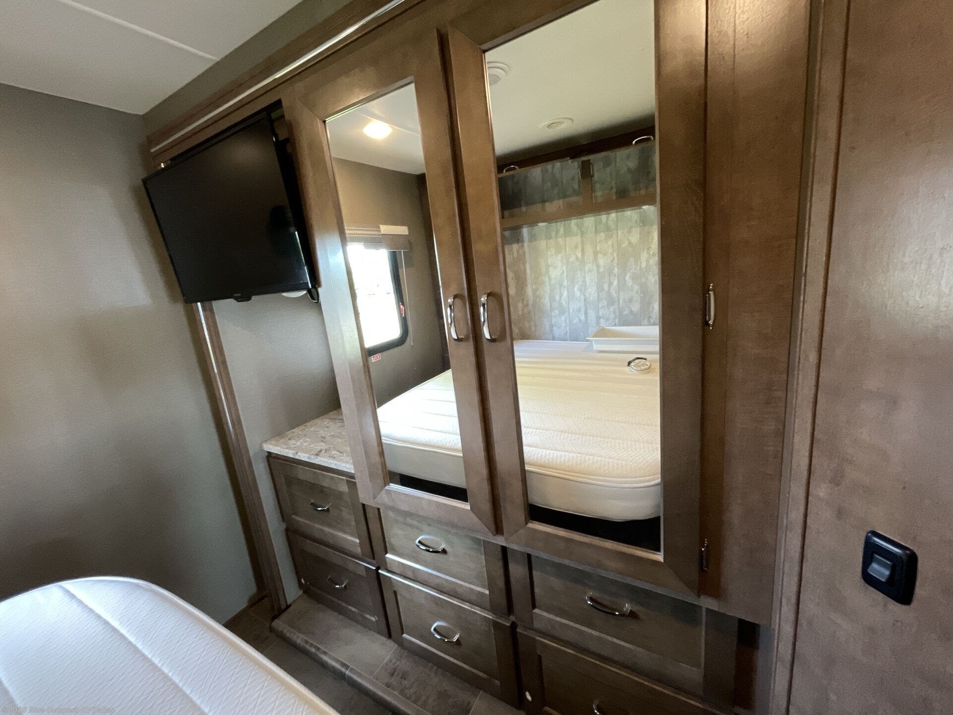 Because this Intent Class A Gas motorhome comes with a queen-size bed in the rear, private bedroom, a set of bunk beds, and a StudioLoft Bed over the cab, it can sleep nine people during any adventure you take, making it a wonderful addition for those with large families. You will also appreciate the full-wall slide because it gives everyone space to move about freely and enjoy the many indulgent amenities.
