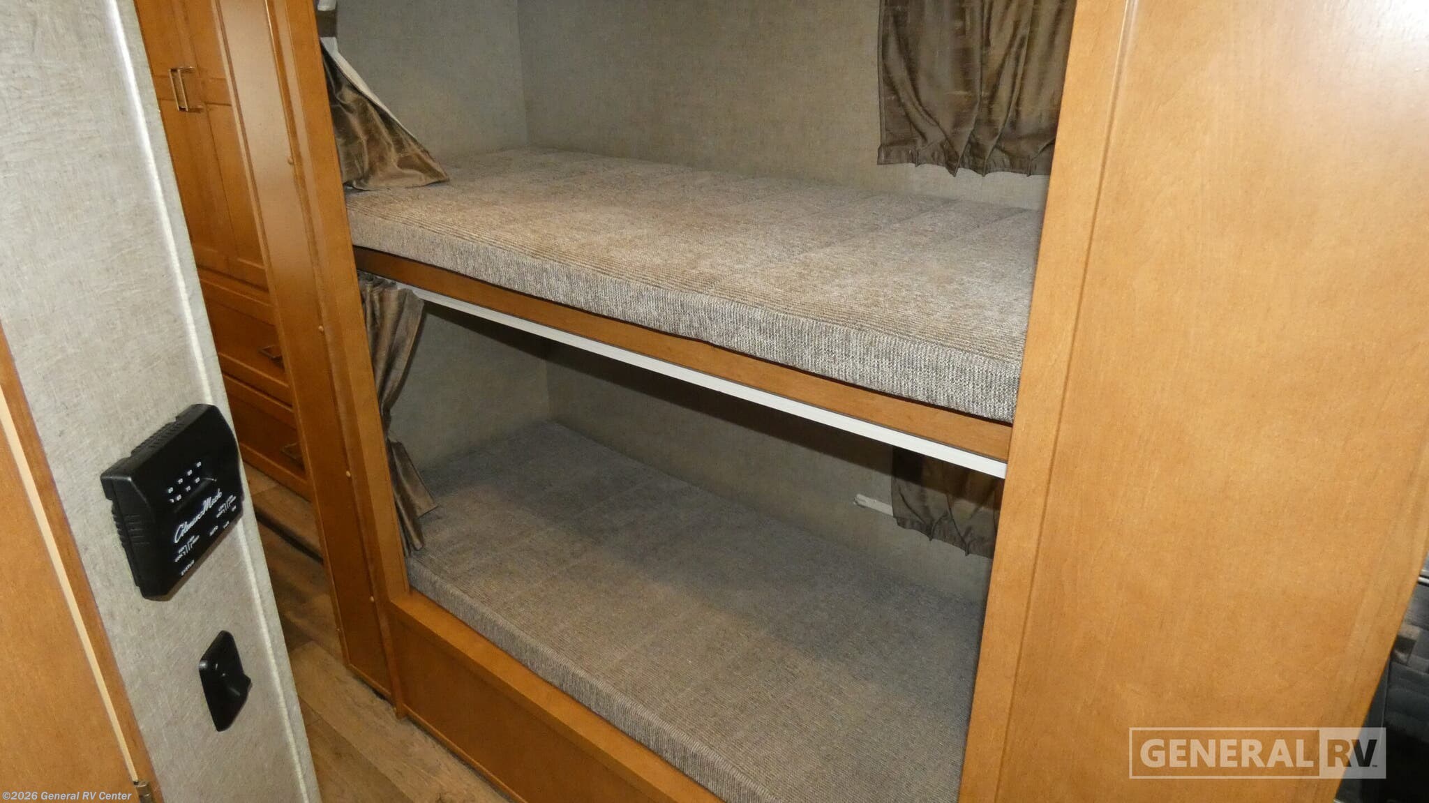 **Winnebago Minnie Winnie 31G Class C Motorhome — highlights:** - Rear Private Queen Bedroom - Mid-Coach Bunk Beds - Single Living-Area Slide-Out - Cab-Over Bunk The 2019 Winnebago Minnie Winnie 31G is a family-focused Class C motorhome designed to maximize sleeping capacity while maintaining a functional living space. The main living area features a single slide-out that houses both the booth dinette and sofa bed, opening up the floorplan for comfortable movement and seating. A cab-over bunk adds additional sleeping space, making this coach well suited for larger families or groups. Toward the rear, the Minnie Winnie 31G offers a private queen bedroom with wardrobe storage, a chest of drawers, and a sliding door for separation from the rest of the coach. Mid-coach bunk beds provide dedicated sleeping space for kids or guests, located conveniently near the bathroom. The kitchen includes a three-burner cooktop, refrigerator, pantry, and overhead cabinetry, while the full bathroom features a 32" x 32" shower, toilet, and vanity. With multiple sleeping zones and a smart, family-friendly layout, the 31G is built for comfortable travel and extended camping trips.