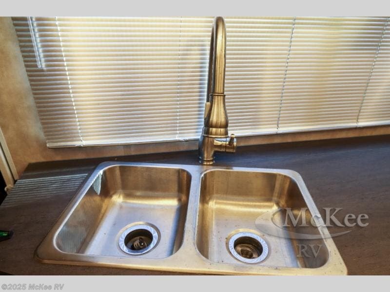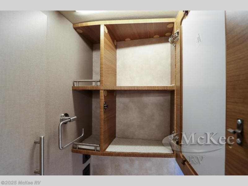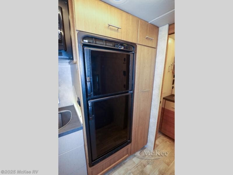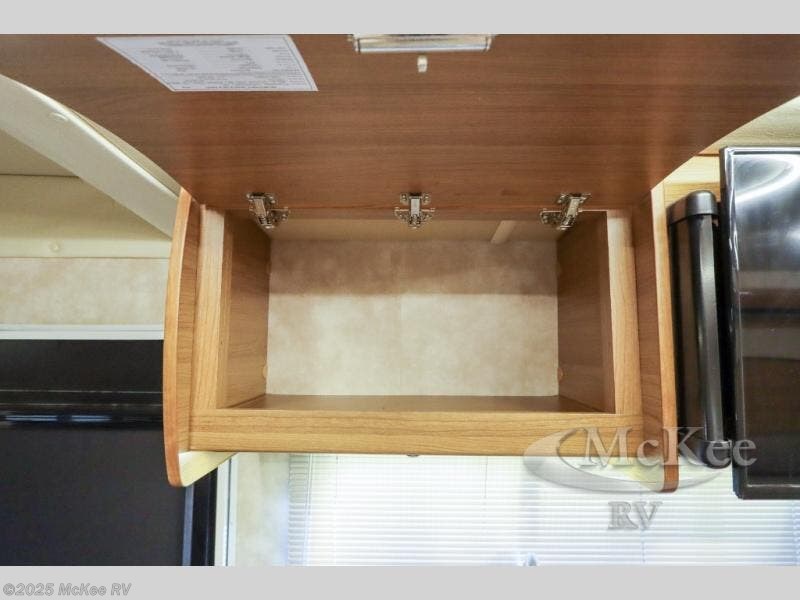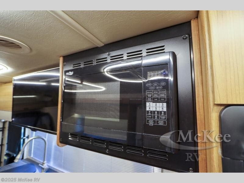 Hit the road knowing that you have all that you need at your fingertips in this Winnebago Navion Class C diesel motorhome. Creating meals and snacks will be easy in the kitchen because of the two-burner range and convection microwave oven, and the double-door refrigerator/freezer will keep all of your perishable items cold and fresh. You will also find a pantry cupboard near the refrigerator for all of your dry and canned goods, and the overhead cabinets keep your daily dishes and kitchen items easily accessible. You will thoroughly enjoy the convenience of having a rear bathroom in this coach, and the Murphy bed will prove to be a huge asset in providing extra sleeping space at night while still keeping the interior free from clutter during the day.