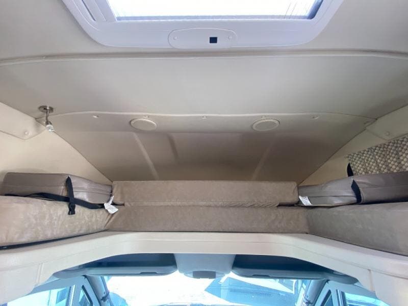 The Winnegabo Navion is the ultimate in efficient and luxurious RV travel because of the solid foundation it has been built upon. The legendary SuperStructure construction is what provides the coach with a strong and durable base that is able to accommodate all of the functional amenities you are looking for, like the compact sleeping capacity. Whenever you need to pull over and take a break from driving, the swivel cab seats allow you to turn around and join in the fun that is going on in the back of the coach, and your kids will love spending their afternoons in the bunk over the cab because they can turn it into their own little fort while they take a nap or put together a puzzle.