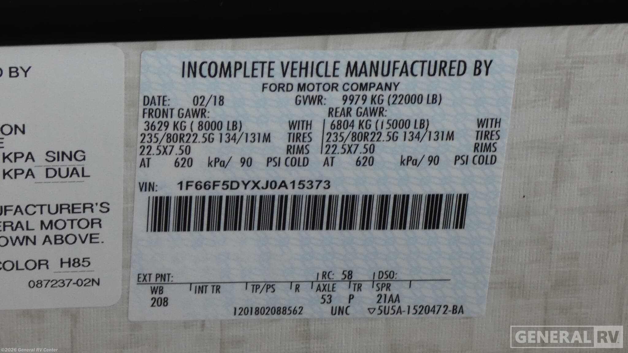 - VIN1F66F5DYXJ0A15373