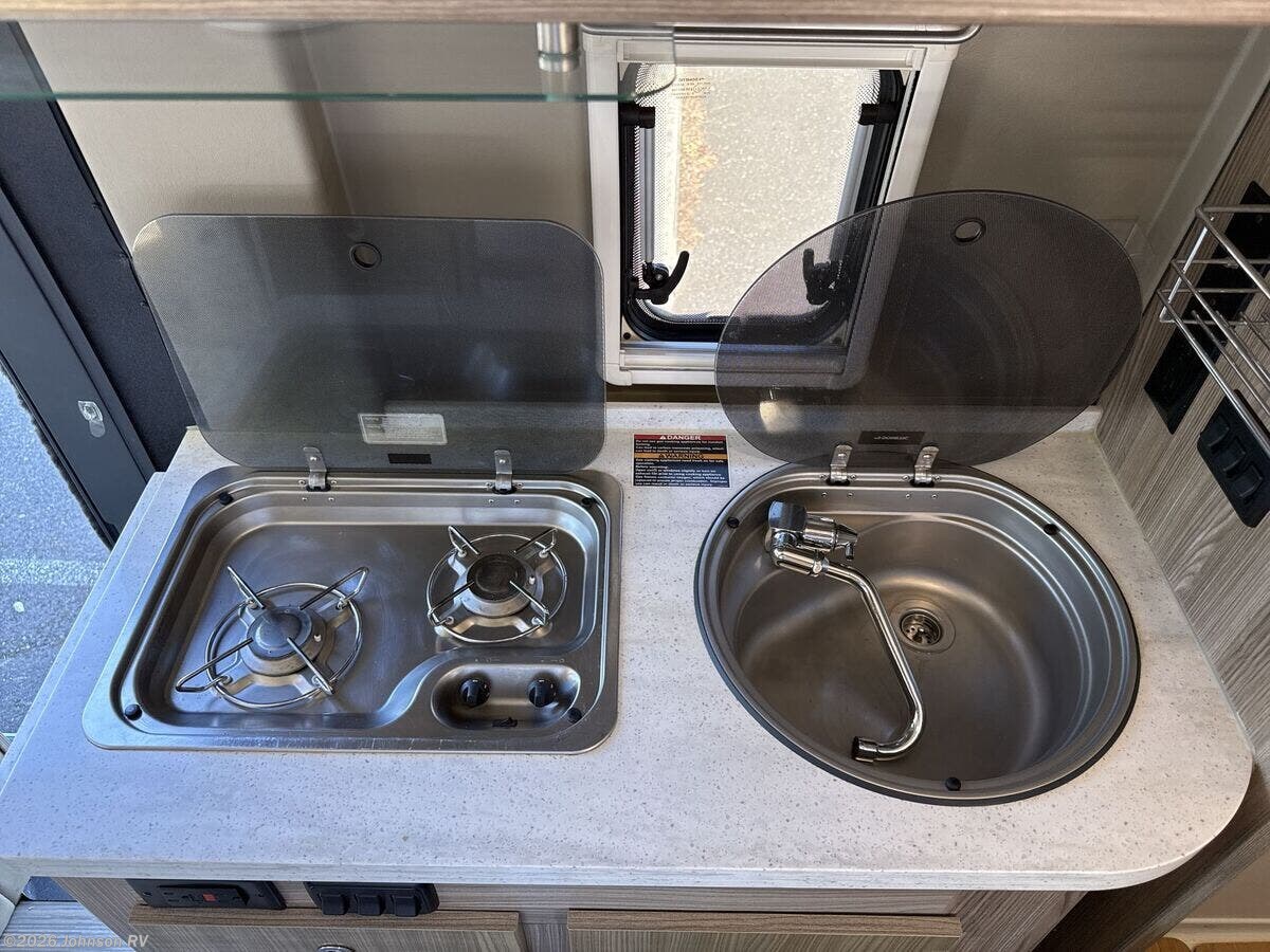 The 2019 Winnebago Travato 59G is a versatile and compact Class B RV, built on the reliable RAM ProMaster chassis. This vehicle is designed for those who love the freedom of the open road, offering a perfect blend of comfort, functionality, and modern amenities. Under the hood, the Travato is powered by a robust 3.6L V6 gas engine, delivering 280 horsepower and 260 lb-ft of torque. It features a 6-speed automatic 62TE transmission and a 180-amp high output alternator, ensuring a smooth and efficient drive. The vehicle is equipped with 4-wheel ABS brakes and stylized aluminum wheels, providing both safety and style. Additionally, it includes a 3500-pound hitch with a 4-pin connector, making it easy to tow additional gear. The cab of the Travato is designed with driver comfort and convenience in mind. It includes: - Power door locks with remote - Power windows - Driver and passenger airbags, including front, side curtain, and side seat bolster - Ergonomic slide swivel recline seats with adjustable lumbar support - Power heated side mirrors - Carpet floor mat - Radio GPS rearview monitor with a 5-inch color touch screen - Sirius XM, Bluetooth, and USB ports - Steering wheel controls and a telescoping steering wheel - Power steering and 12v powerpoints - Front and side privacy panels The living spaces in the Travato are thoughtfully designed to maximize comfort and utility. Features include: - Power patio awning with LED lighting - Porch light with interior switch and driver side service light - Power entry step and side screen door - LED interior lighting and a soft vinyl ceiling - Tinted coach windows with black shades and gear net For dining, the Travato offers: - Corian countertops with a pull-out countertop extension - Stainless steel sink with a glass cover and cold water filtration - 12v compressor refrigerator freezer - 2-burner cooktop with glass cover and cooktop heat shield - Microwave oven and microwave convection oven - Power vent fan Entertainment and electronics are well-catered for with: - Systems center - LP CO and smoke detectors - Amplified jack digital TV antenna and cable TV hookup - 24-inch HDTV - Stereo AM/FM/CD/DVD/Bluetooth - Outdoor speakers Sleeping arrangements are comfortable and flexible, featuring: - Double bed with a deluxe FROLI sleep system The bathroom is equipped with: - Sliding tambour bath door - Medicine cabinet and mirror - Sink and shower curtain - Flexible shower head and foot pedal toilet - Power roof vent Mechanically, the Travato is outfitted with: - Permanent mount LP tank - 200w solar panels with a solar charge controller - Energy management system - Two deep-cycle Group 31 batteries and two AGM batteries - Automatic dual battery charge control and battery disconnect switch - 2800w Onan gas generator - 30-amp service cord and 45-amp converter charger - 1000w inverter - 13.5k high-efficiency roof AC - Truma Combi Eco Plus heating system - City water fill and on-demand water pump - Water heater bypass and holding tank flush system - 10-foot sewer hose and outdoor wash station The Travato also features the Pure Advanced Energy System, which includes a second under hood alternator, lithium-ion battery, and inverter, providing advanced energy solutions for extended off-grid adventures. Overall, the 2019 Winnebago Travato 59G is a well-equipped and thoughtfully designed RV, perfect for those seeking adventure without sacrificing comfort and convenience. ???