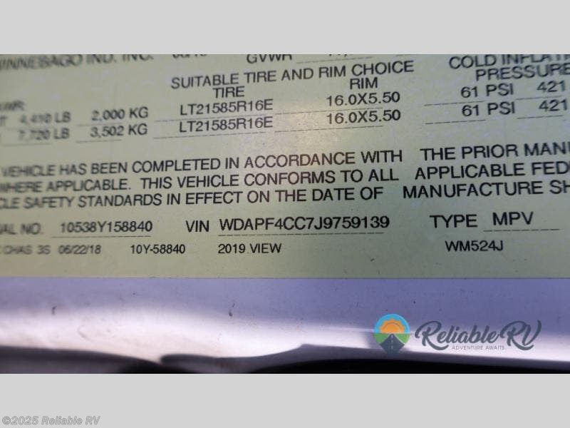 Request More Info on this 2019 Winnebago View 24J Offered for sale by Reliable RV