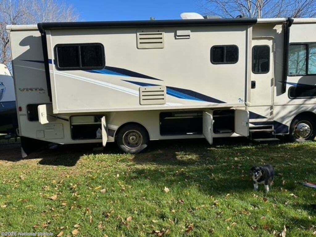 2019 Winnebago Vista LX 27N 28' Class A Motorhome. Ford Triton V10 Gasoline Engine, 3 Slide Outs, Awning, Sleeps 6, A/C Unit, Leveling Jacks.