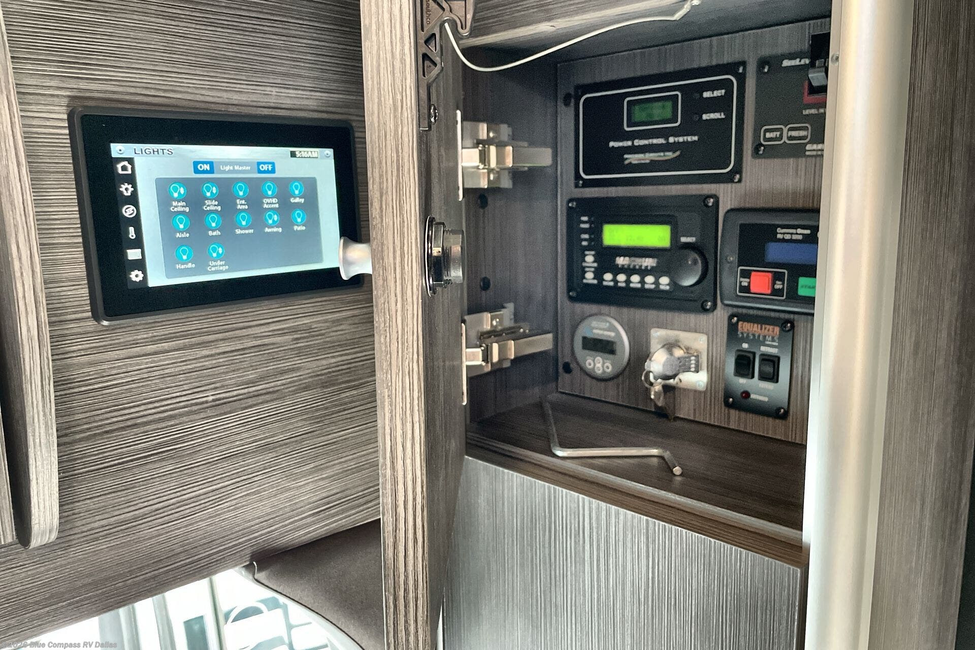 A luxury experience is what you will expect when riding and staying in this Atlas Murphy Suite class B+ diesel coach. After you've traveled all day to your destination, take a load off and relax on the sofa that features two power reclining seats and two seatbelts for passengers. You can prepare lunch on the two burner cooktop or make something quick in the convenient convection microwave. The full residential bathroom allows you to get ready before each day. Here, you'll appreciate a Cedar lined wardrobe, and storage drawers for your necessities, integrated LED shower lighting, plus a Fantastic Fan with temperature and rain sensors. The power awning with LED lights will provide an outdoor living space that allows you to stay out late and visit with loved ones around the campfire.