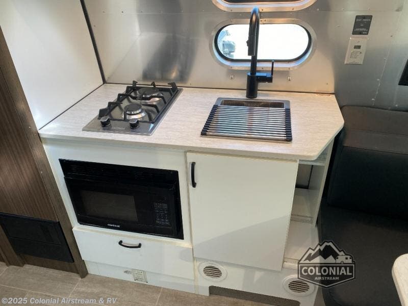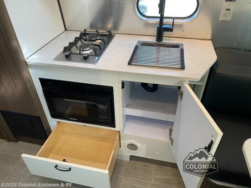 The Airstream Caravel travel trailer help you to create the perfect balance between the spontaneity of an adventure and the comfort of knowing you have a stylish place to stay warm and is full of features to make your trip unforgettable. Inside each of these travel trailers you will enjoy LED lighting with a dimmer, overhead storage with sliding doors, and a Blu-Ray DVD player all for your convenience. You won't need to eat out either with all of the amenities the kitchen provides like the three burner or two burner gas cooktop, depending on which model you choose, the stainless steel sink, and the JL stereo with Bluetooth for you to jam out while you cook. Plus, along the outside there is an exterior shower with hot and cold water to prevent tracking any mud inside the trailer. From solo trippers to families, these Airstream Caravel travel trailers have everything you will need to make the most of your trip!