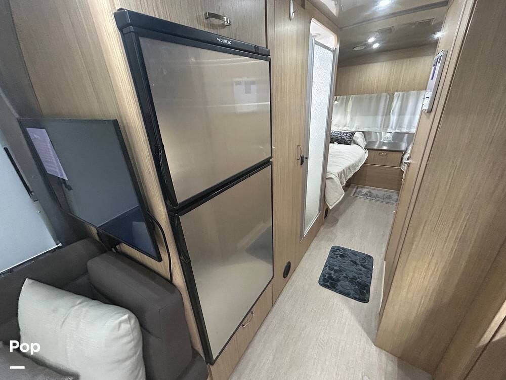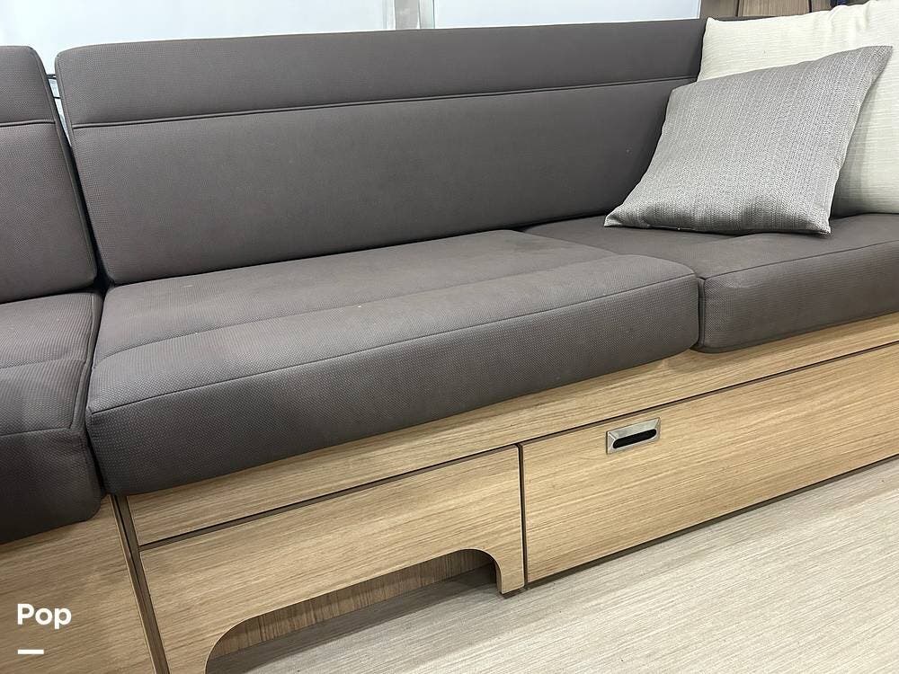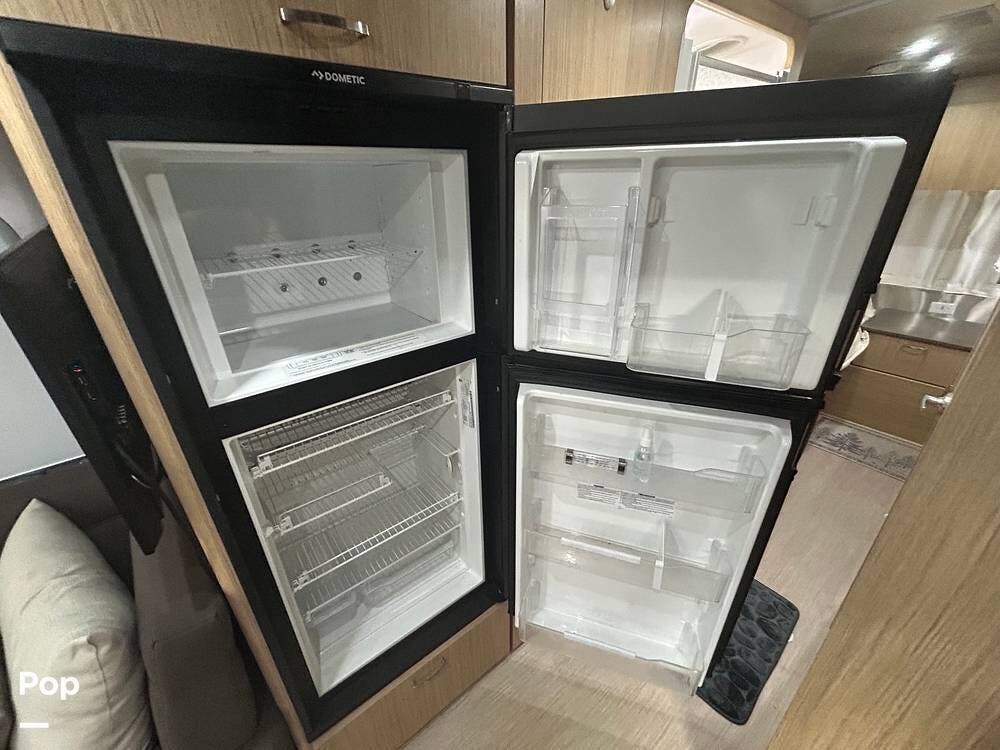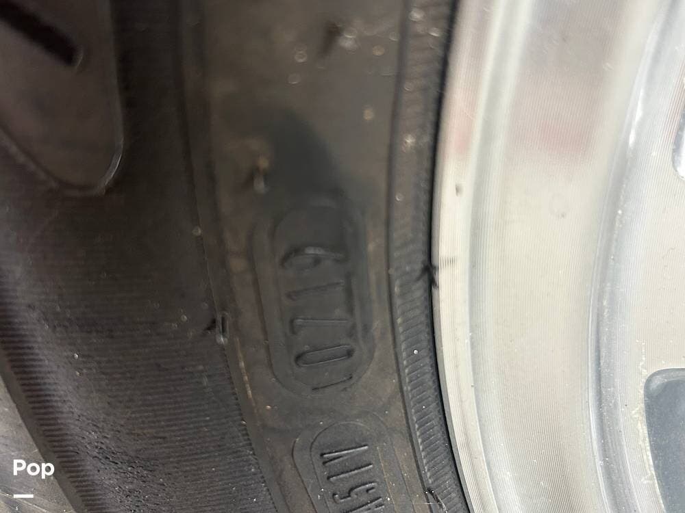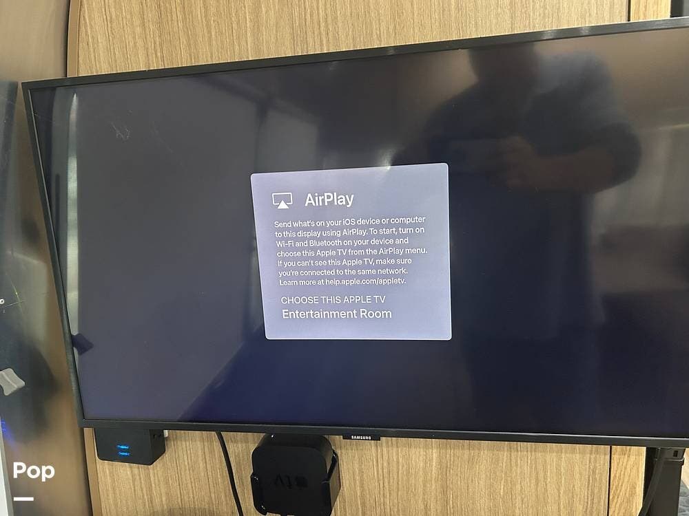 There are lots of upgrades like the TPMS tire monitoring system, including on the spare tire. The fire suppression system is located in the refrigerator ignition area. There is one Samsung 34" smart TV 4K UHD and a LG 27" TV in bedroom and a gas safety shut-off device.