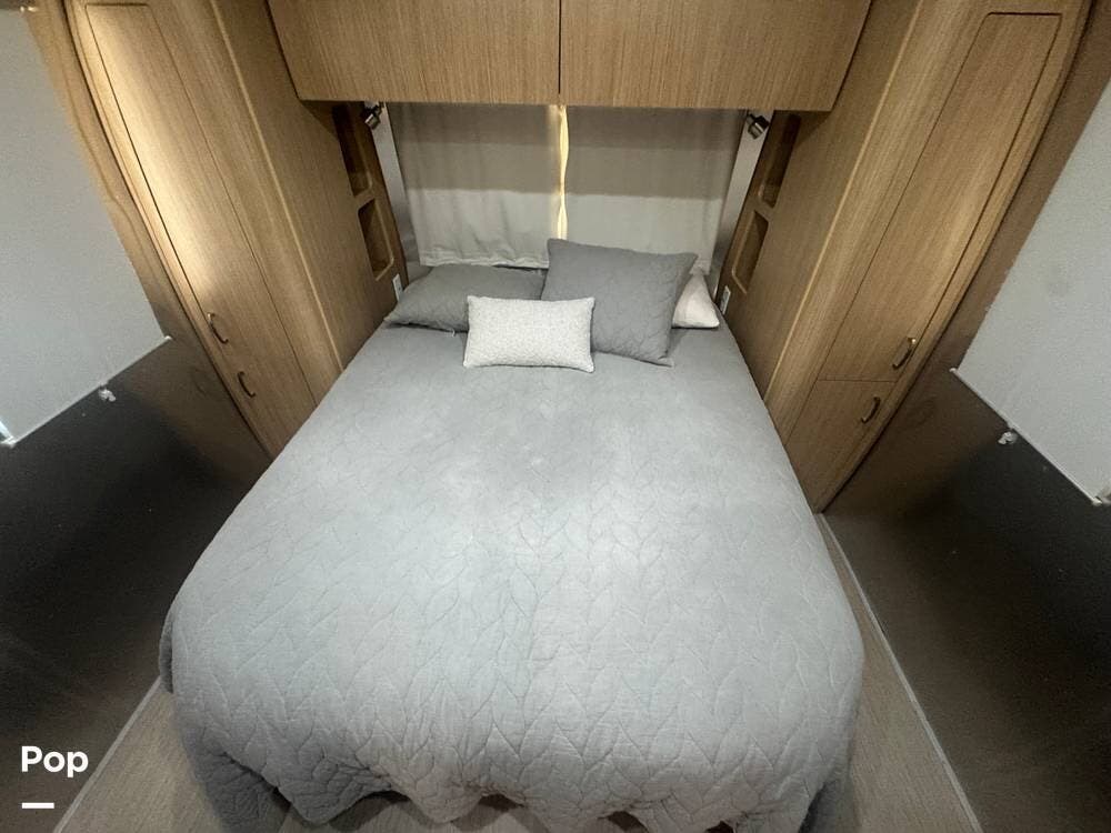 Enjoy the comfort of a queen-size bed that perfectly fits the contour of the travel trailer. It's the ideal spot to unwind with a good book, catch up on your favorite shows, or get a rejuvenating night's sleep.
