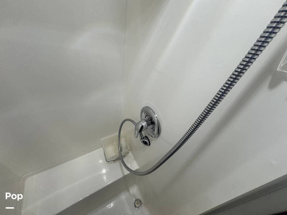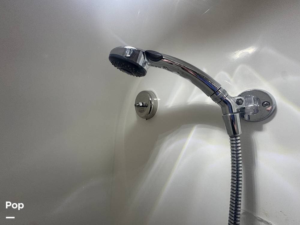 The bathroom boasts a generous vanity with ample storage space. A separate shower with its own door ensures comfort and privacy.