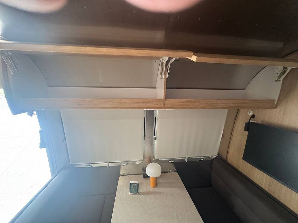 A spacious closet for hanging clothes and under-bed storage for your gear make organizing a breeze. Upper and lower cabinets hold all your kitchen essentials, while lockers above the dinette store everything else.