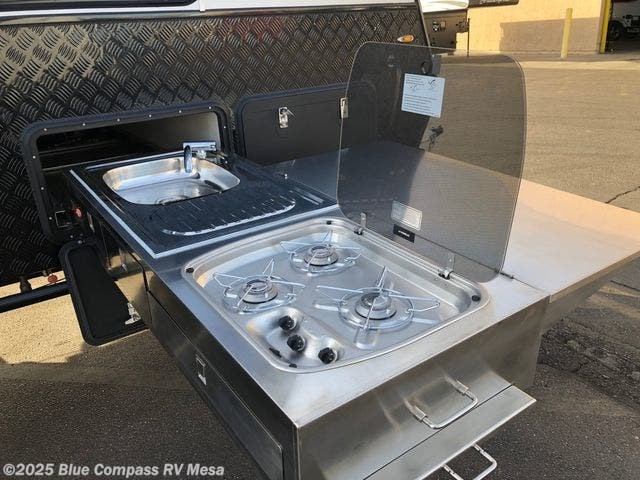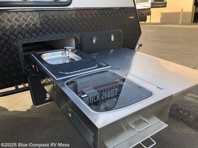 Thanks for stopping by Tom's Camperland in Mesa! Give us a call at (480) 894-1267, send us an email at , or swing by for a tour today! HQ17 The HQ17 features our same rugged design language while emitting a sense of luxury. An intelligently designed family hauler like no other, the HQ17 is made to maximize your sense of space. This trailer sleeps up to 5 individuals, so you can play and entertain by day, and comfortably rest during the evening. Suspension Black Series has worked tirelessly to develop the most robust independent suspension system available. We have developed our own custom designed and engineered trailing arms that allow each wheel to move independently, allowing for a smoother, more stable ride whether on the highway or on rough terrain. Our quad shock design spreads the load across four shocks instead of two, allowing for a smoother ride, safer handling, and longer shock life. Exterior The new, patented cone nose design allows for clean aerodynamics for easier towing. The diamond plate lower section and corner bash bars help keep its beauty when things turn rough. The same independent suspension design was adapted into a dual axle design to help disperse the weigh more evenly and help keep a smoother, more stable ride for safer towing. The roof mounted solar panels help keep the four 100ah batteries charged up so the trailer is ready to go whenever you are. Tough, all-terrain tires are included with two full size spares. Interior The HQ17 is truly your family’s new headquarters. The luxury built into each trailer is unrivaled in this price point. From modern, European appliances to Five Star Timber Veneer on all cabinets, your family of five is sure to feel like they are in a resort. A large queen size mattress in front and two bunk beds in the back, along with the convertible seating/sleeping area means there is ample room for the whole family to get a restful night’s sleep. Latching cabinets and soft close drawers keep things tidy when things get rough. The included Dometic air conditioner keeps you cool, even on scorching hot Summer days.