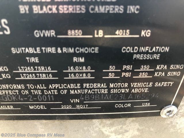 Request More Info on this 2020 Black Series HQ17 Offered for sale by Blue Compass RV Mesa