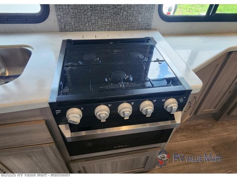 With any Freedom Express Liberty Edition travel trailer by Coachmen RV you will enjoy years of use thanks to the Alumicage construction and the Azdel Onboard composite wall panels that provide superior strength and water protection. The unique front automotive glass windshield will give you great views from inside, and you will love the hidden hinge cabinetry, the stainless steel sink with pull-out sprayer faucet, the slotted knife storage behind the stove, plus the slider pots and pans drawers under the dinette. And you can tow easily with your mid-size SUV or half-ton vehicle, plus the Winegard 360+ WIFI and 4G prep may come in handy. Choose your favorite affordable, value-packed model today, and start camping tomorrow!