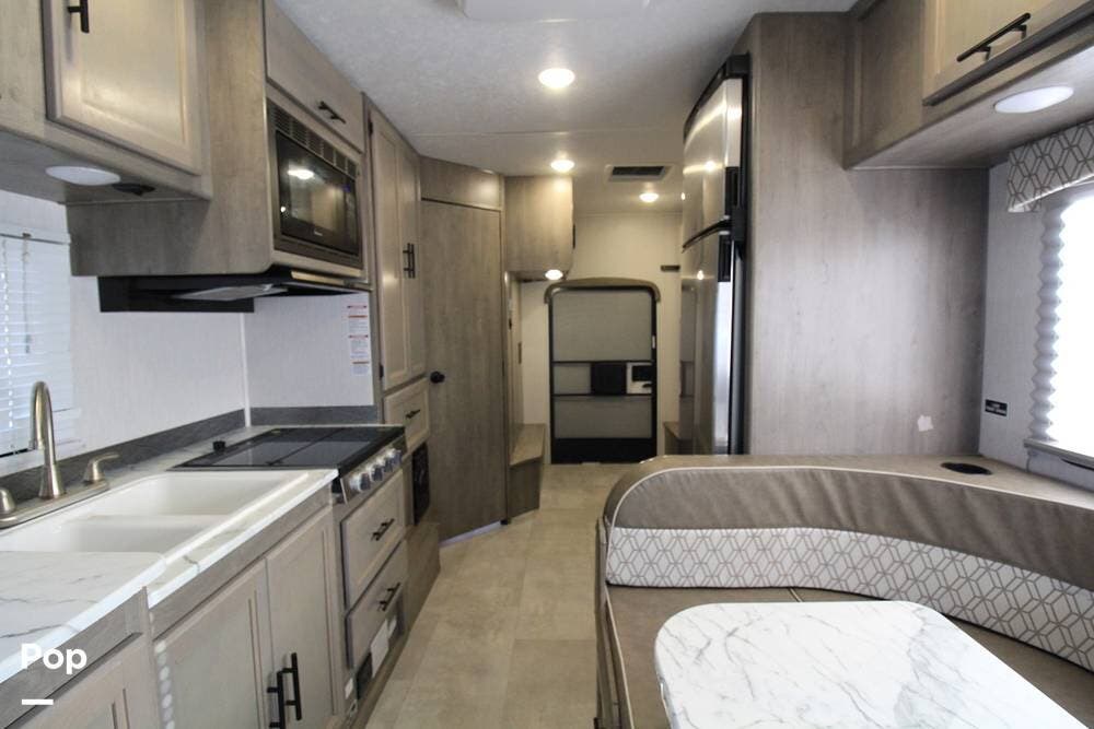 The galley and full bath are mid-coach and easy to access, even while on the road.