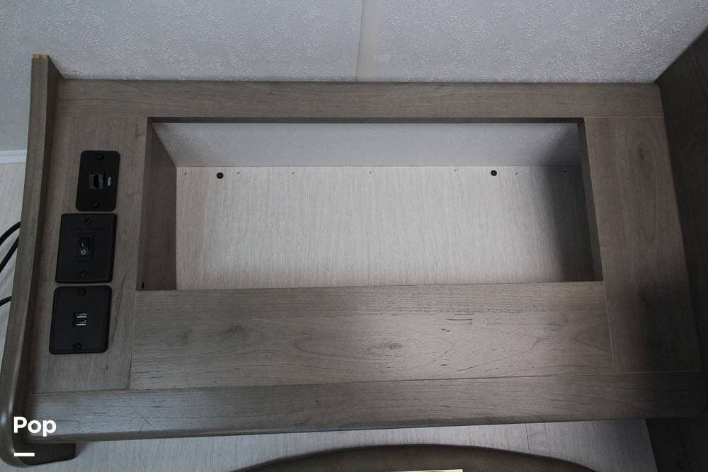 Featuring a straightforward, no-slide-out floor plan, the coach is designed with adventure in mind. The rear camper queen bed folds up, Murphy bed style, to provide a large cargo space for bikes, e-bikes, scooters, and whatever beach or hiking gear you want to bring along!