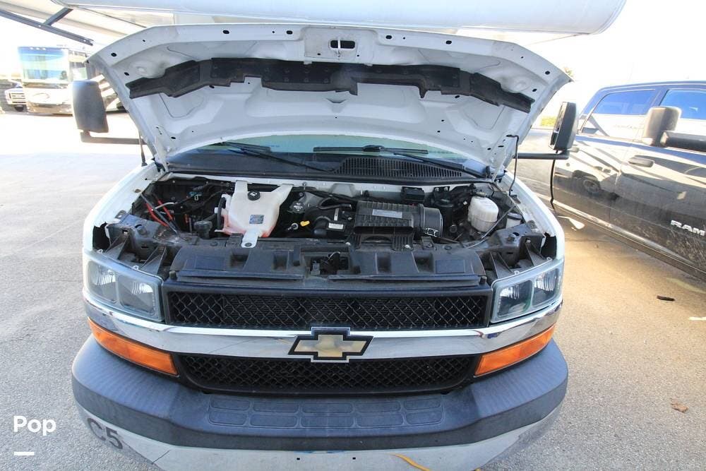 Underpinning the coach is a Chevy 4500 series chassis with the 6.0L V-8 rated at 341HP and 373ft/lbs of torque! The rear hitch is rated for 5,000lbs. of towing capacity as well!