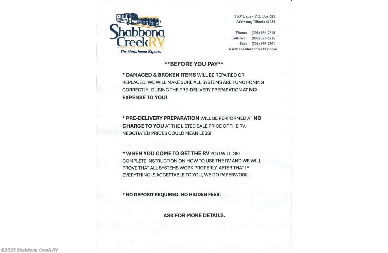 Request More Info on this 2020 Coachmen Freelander 28SS * Offered for sale by Shabbona Creek RV