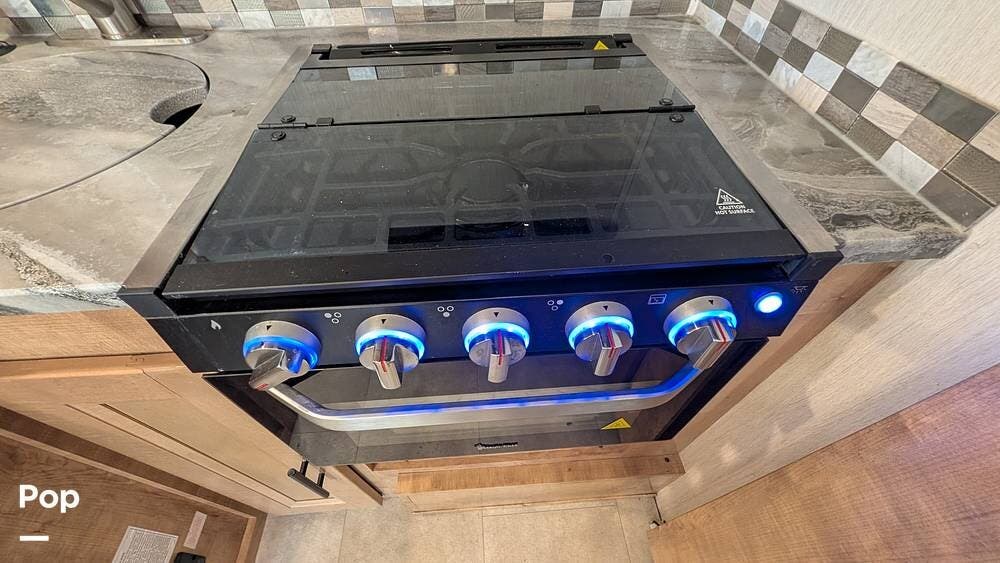 Enjoy the great outdoors under a full-length patio awning illuminated by an LED Patio Light Bar. There is also an exterior TV, perfect for tailgating with all your friends.