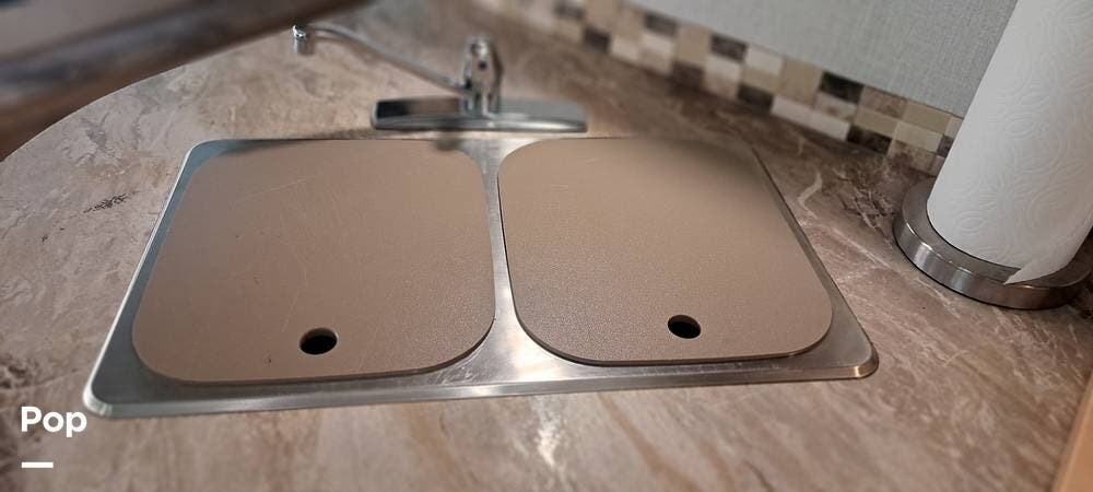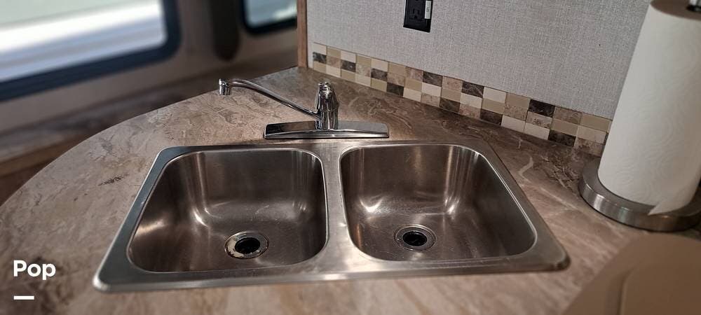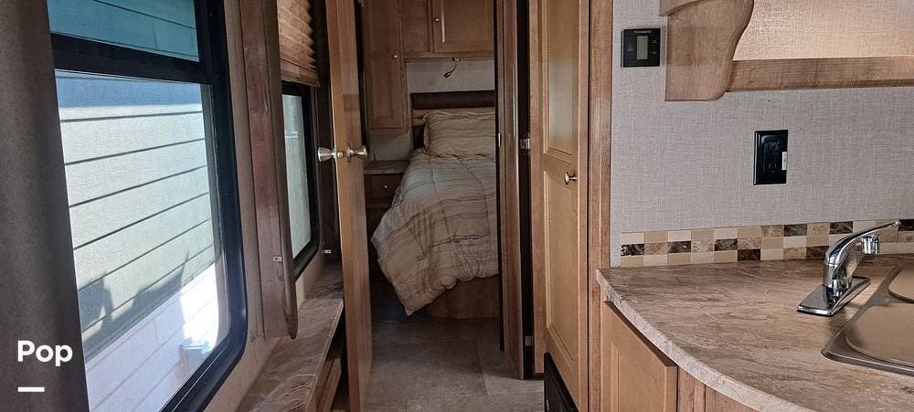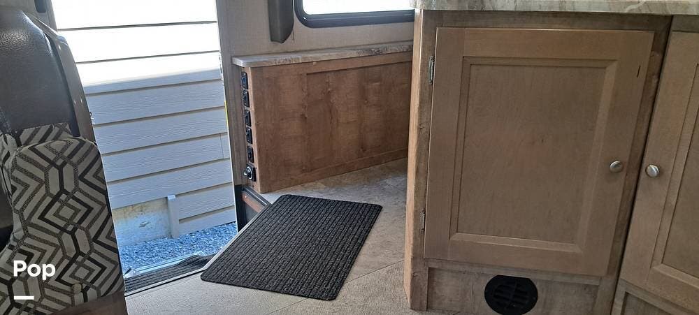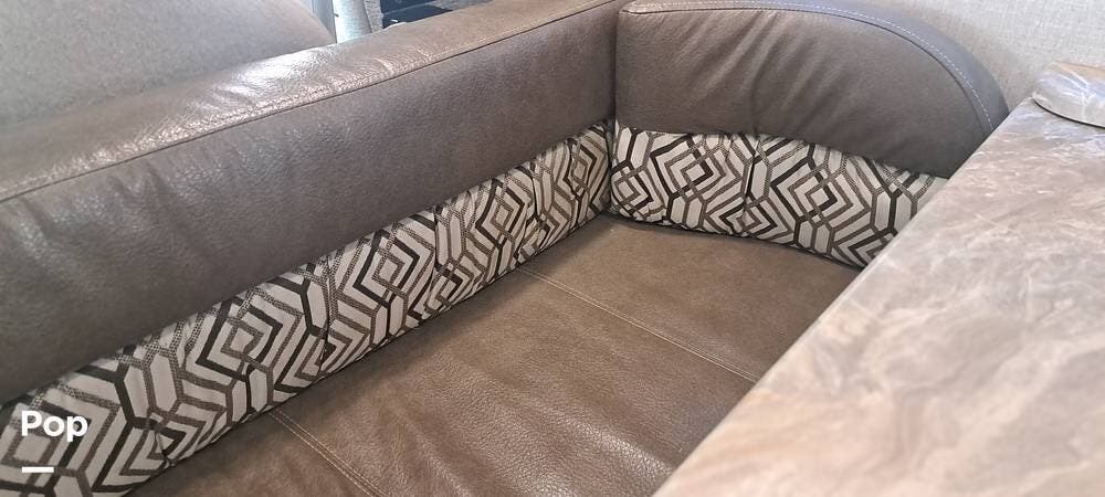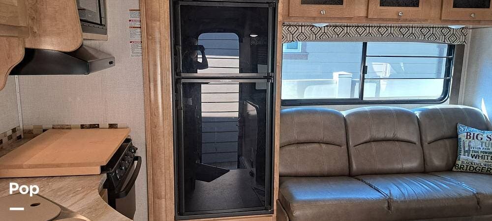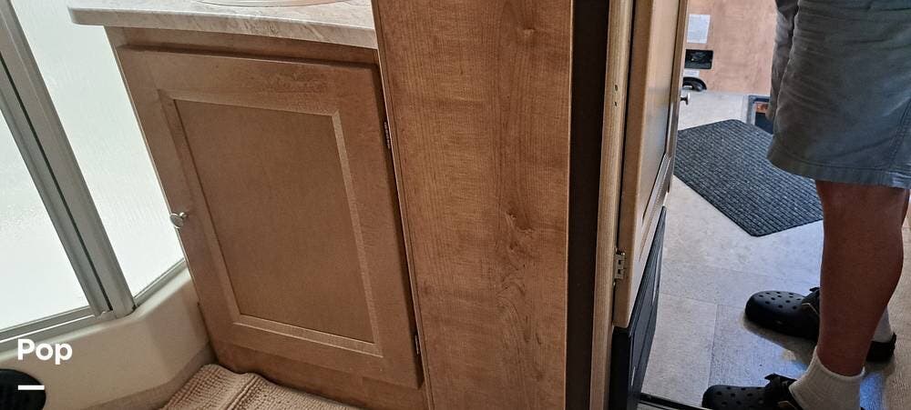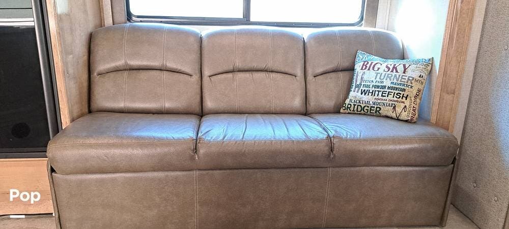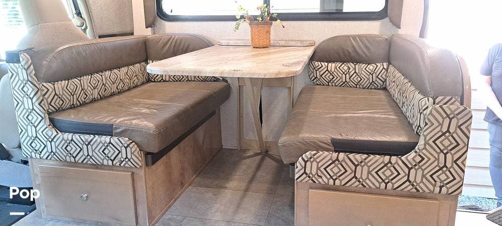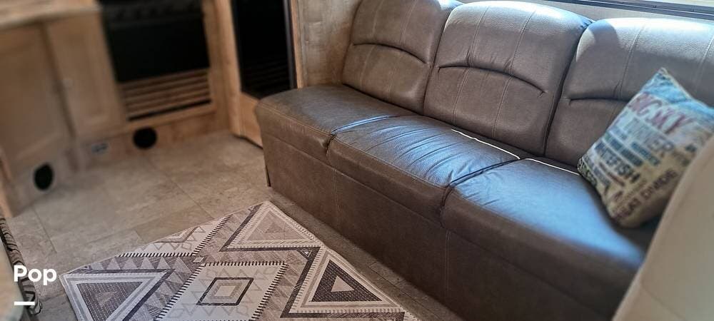 One of the standout features of the 317SA is its dual slide-out floor plan, which dramatically opens up the interior living space. The main slide in the living area expands to provide ample room for the dinette and sofa, making it feel more like a cozy living room than a motorhome.