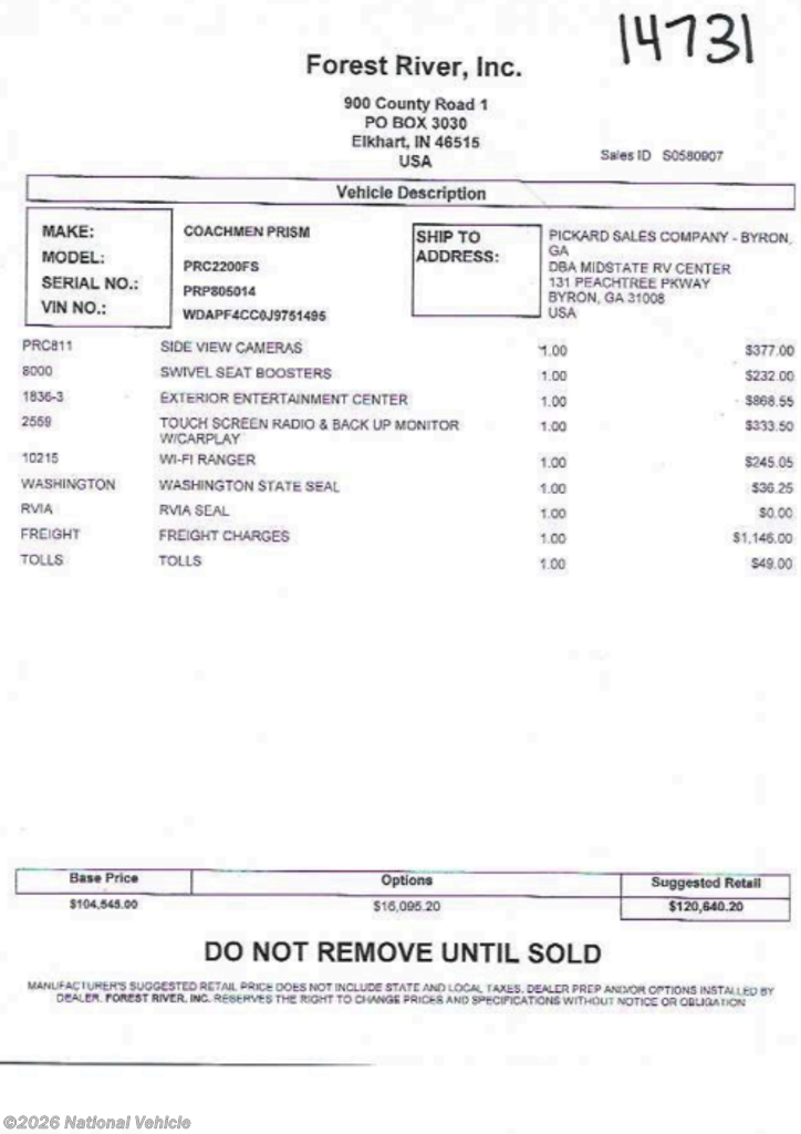 Request More Info on this 2020 Coachmen Prism 2200FS Offered for sale by National Vehicle