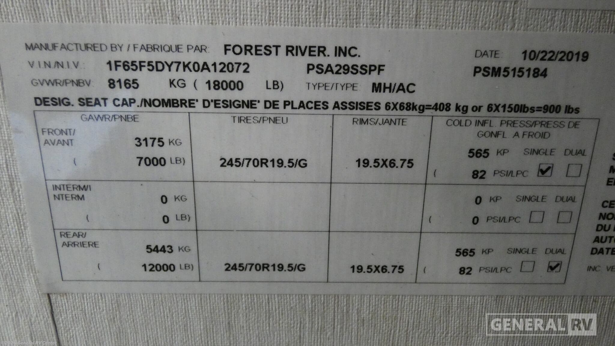 - VIN1F65F5DY7K0A12072