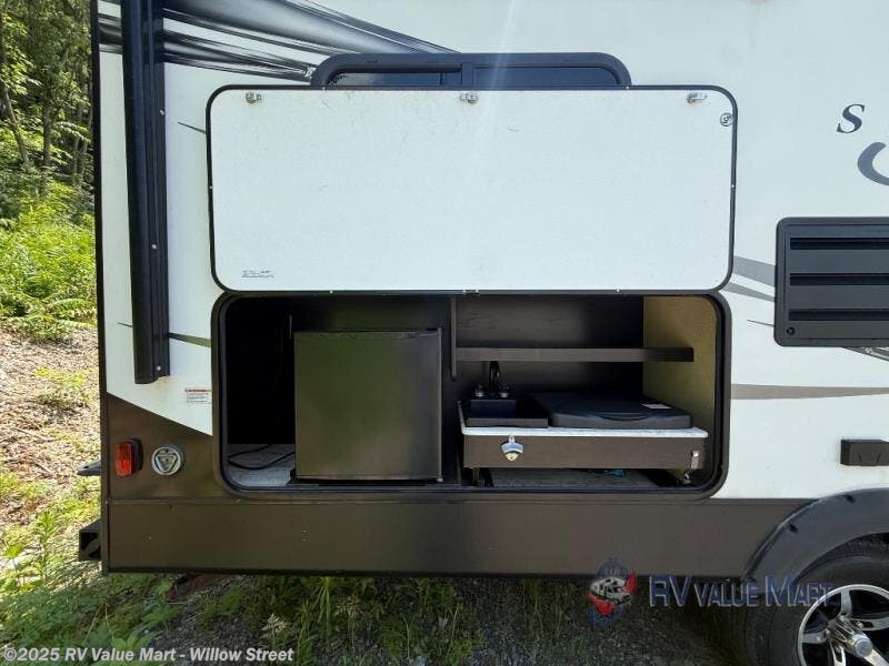 Take this Spirit Ultra Lite travel trailer with you on your next camping adventure and choose whether you want to cook inside or outside! The outdoor kitchen gives you the option to grill up some burgers and hot dogs while you watch your kids run around the campground, and the three-burner range inside lets you whip up a hearty breakfast each morning. You will love having all of the various storage compartments that have been included throughout this model, like tool center, kids' convenience center, and under-the-bunk storage. There is even Max Bed storage with four drawers, a laundry center, shoe storage, plus more!