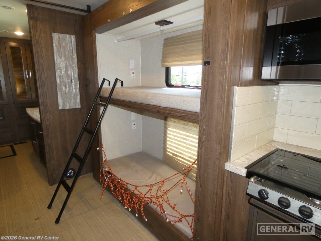 Experience the ultimate in luxury and functionality with the 2020 Coachmen Sportscoach SRS 366BH. This diesel pusher is designed for those who crave adventure without sacrificing comfort. With a spacious interior that sleeps up to ten, it features a king-sized bed, double bunk beds, and convertible sleeping areas, ensuring everyone has a cozy spot to rest. The thoughtfully designed floorplan includes a front living area and a center kitchen equipped with a full-size electric refrigerator and a three-burner cooktop, perfect for preparing your favorite meals on the road. The Sportscoach SRS 366BH is built on a robust Freightliner XC-Series chassis, powered by a Cummins I6 Diesel Pusher engine, providing 340 horsepower and 700 lb-ft of torque. This ensures a smooth ride, whether you're navigating mountain roads or cruising along the coast. With a 20-foot powered retractable awning, you can extend your living space outdoors, creating the perfect setup for enjoying the great outdoors. Plus, with a washer/dryer prep area, staying fresh and organized on your travels is a breeze. Discover more about this exceptional RV at your nearest General RV dealership.
