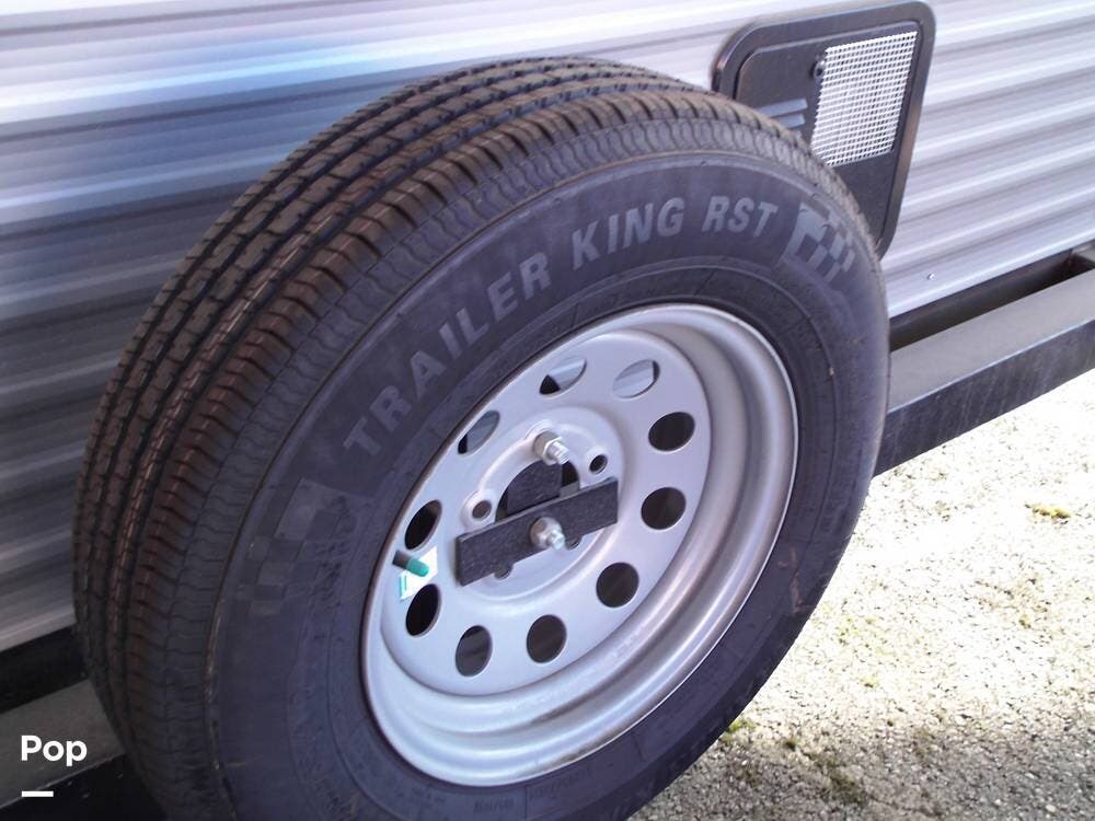 For entertainment, the trailer is pre-wired for cable and TVs and equipped with a Bluetooth stereo system, allowing you to connect your devices for music or movies easily.