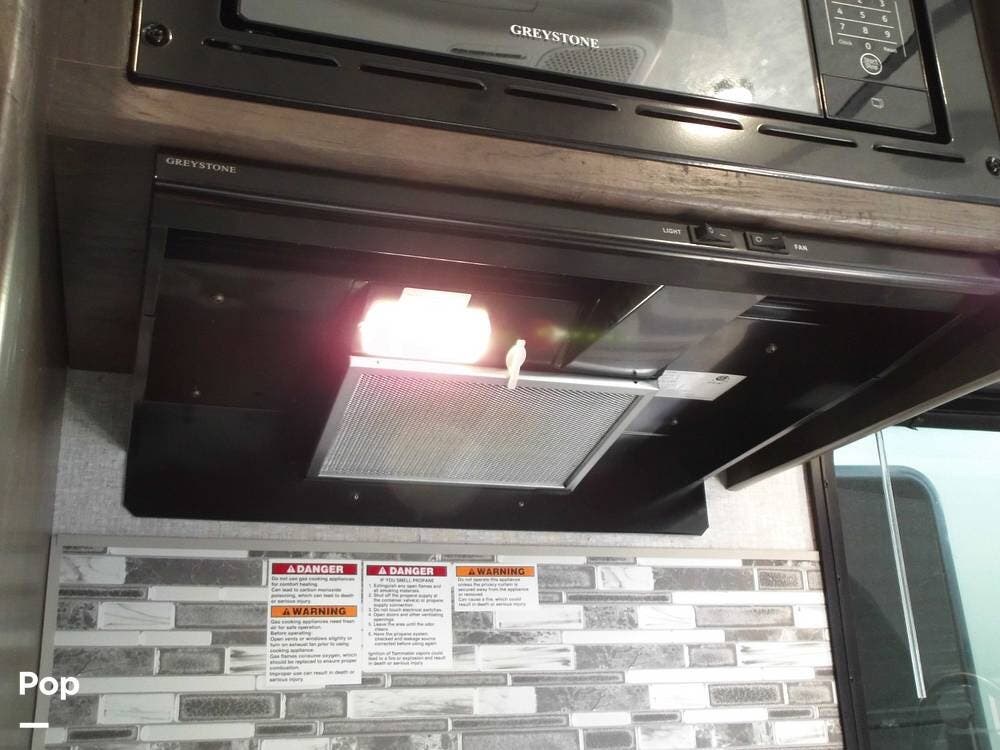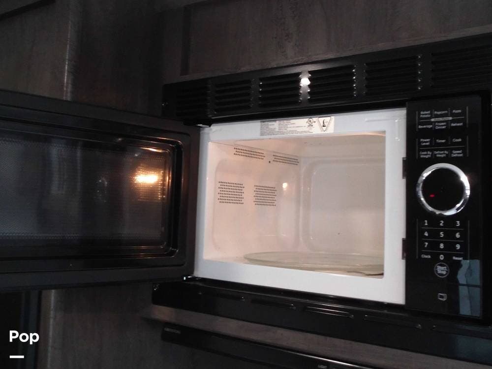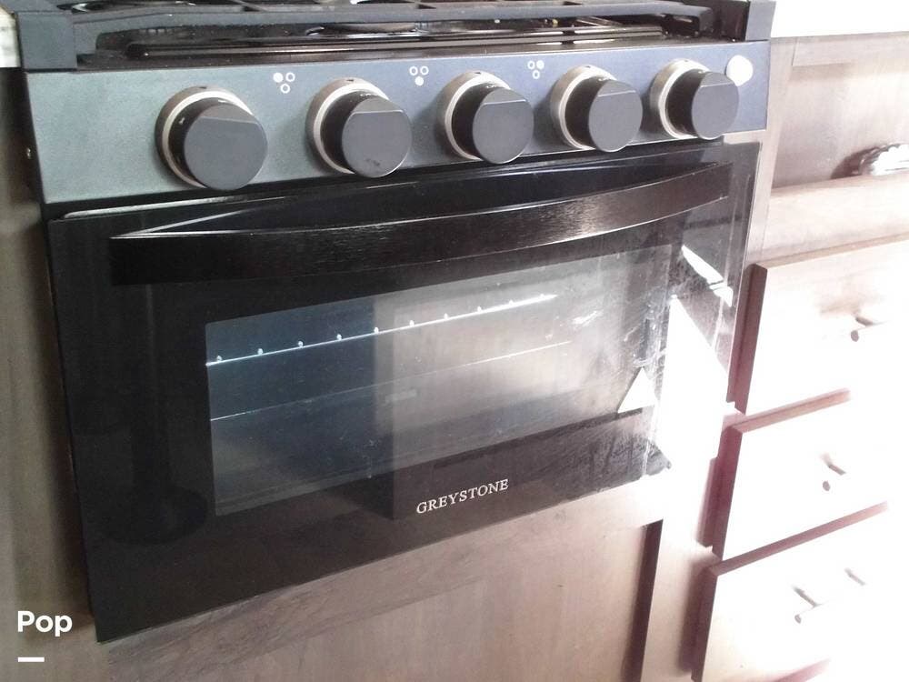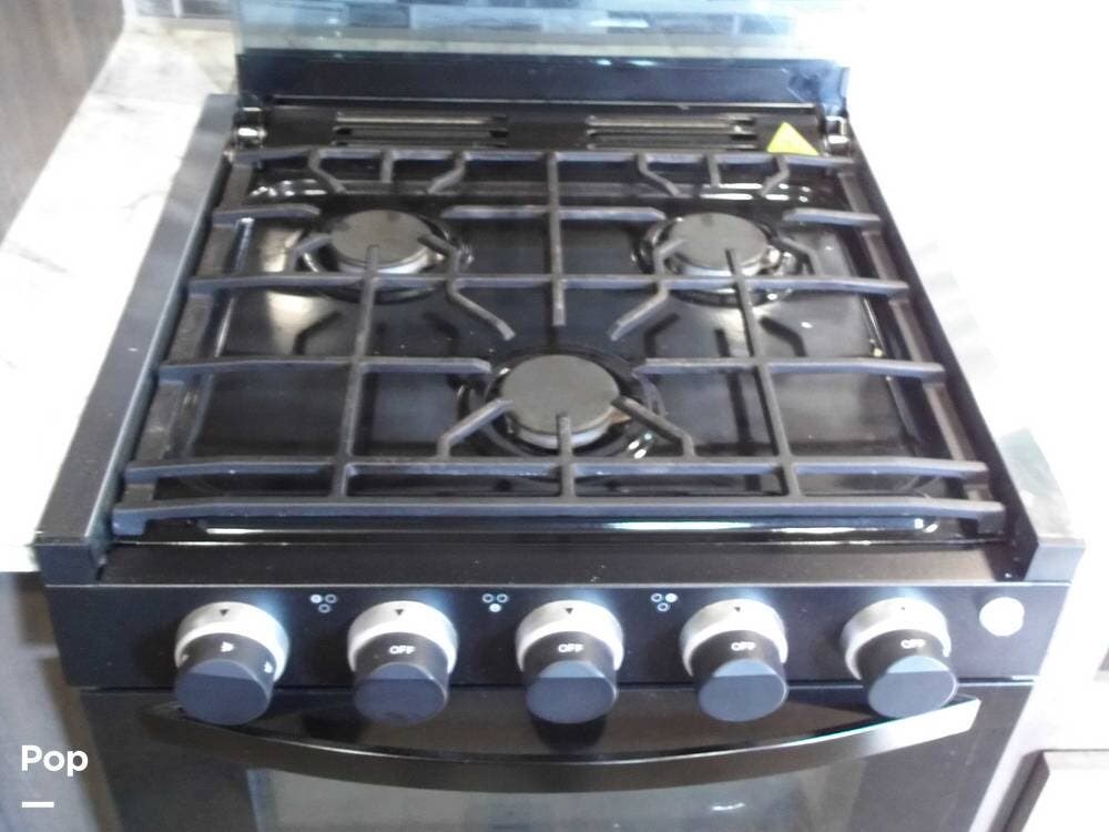 The full kitchen, complete with a refrigerator, freezer, microwave, oven, and stovetop, makes meal prep a breeze, so you can enjoy home-cooked meals no matter where your journey takes you.