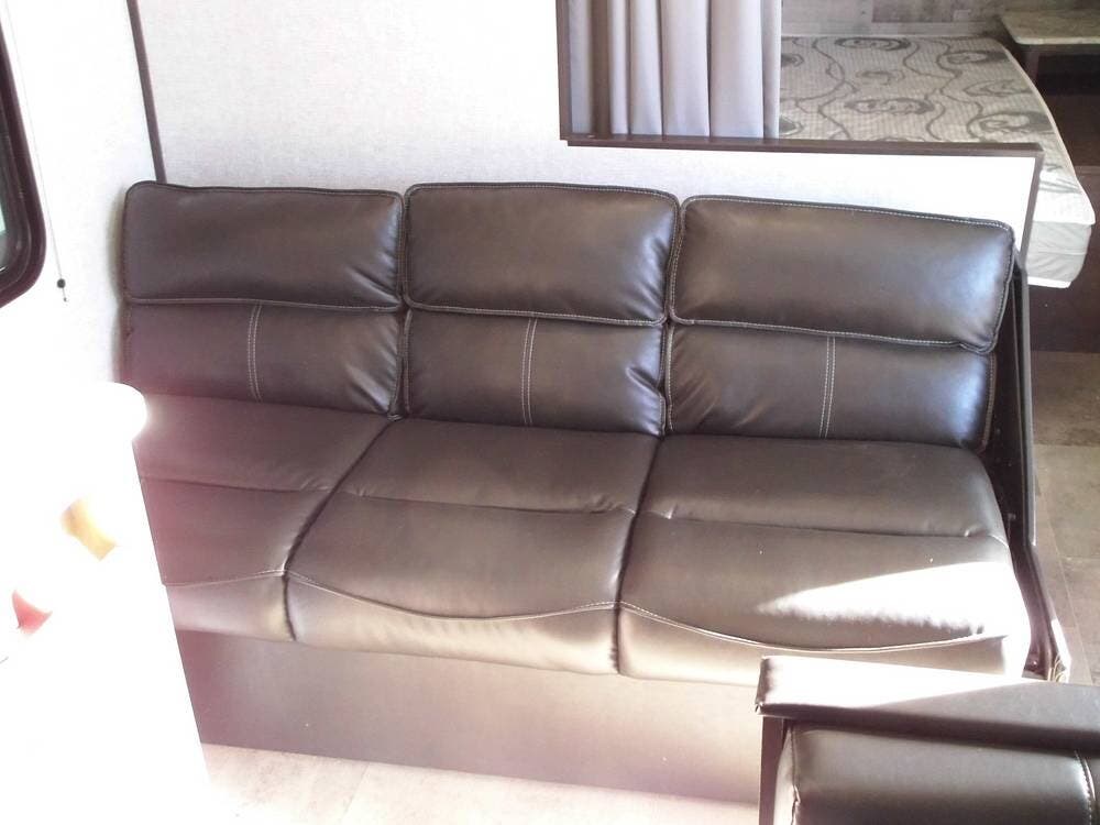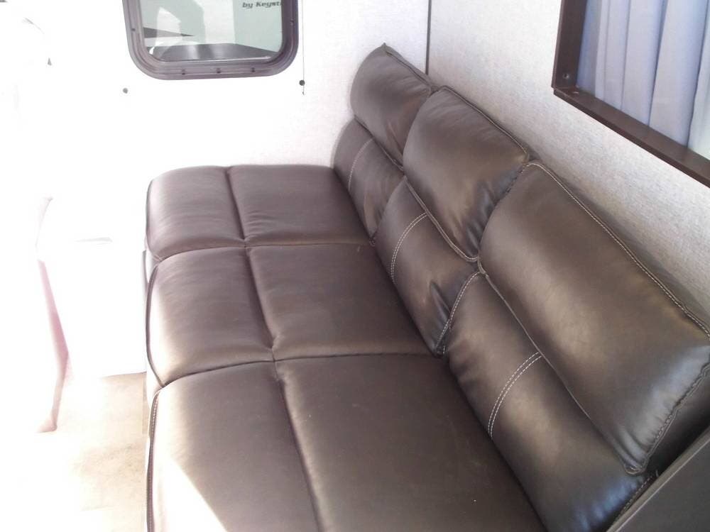 The spacious interior can accommodate up to nine people, featuring a cozy double bunk in the back and a queen-sized bed in the private front bedroom. The dinette sleeper and convertible sofa sleeper allow three more, so there is room for everyone!