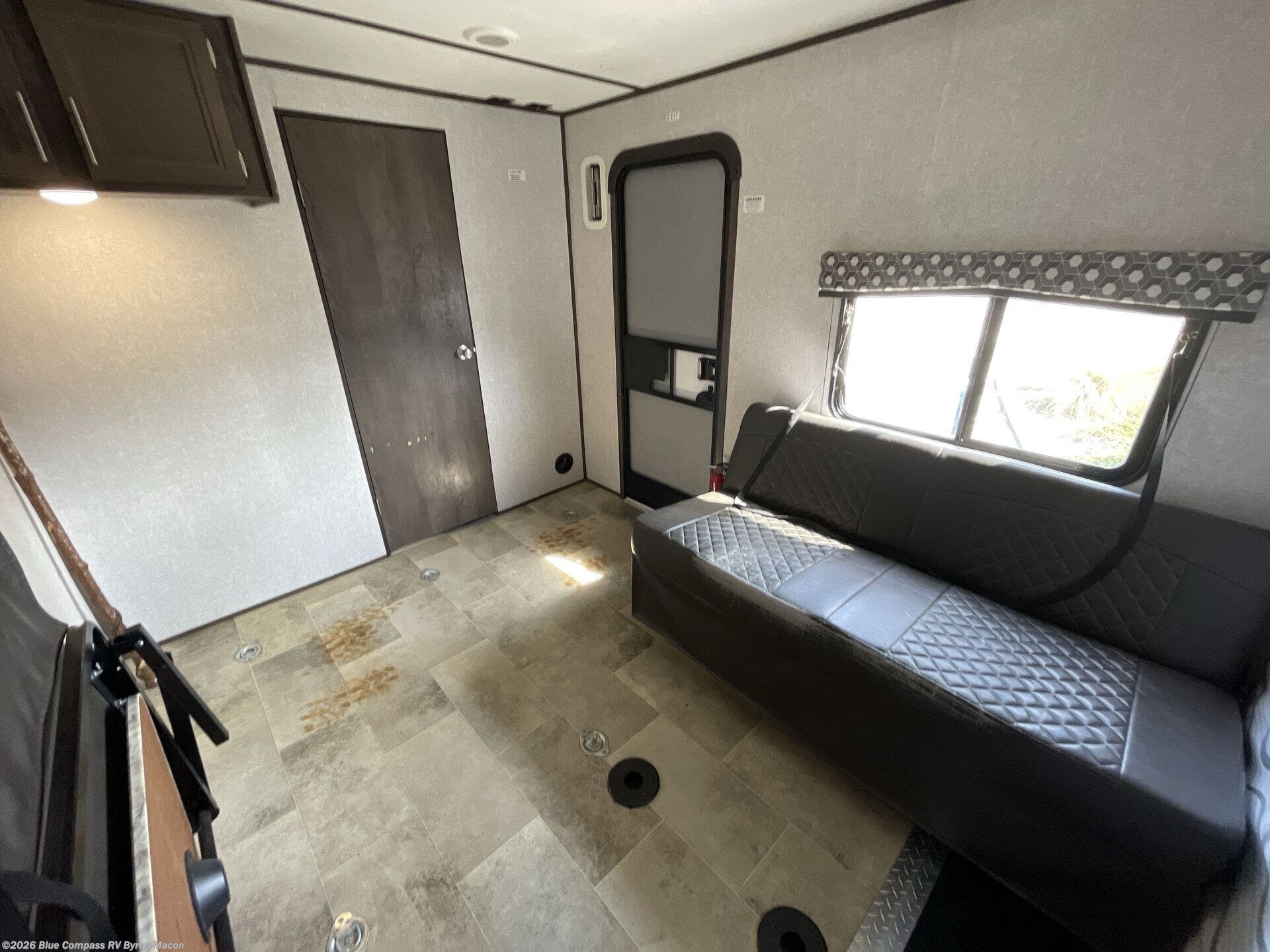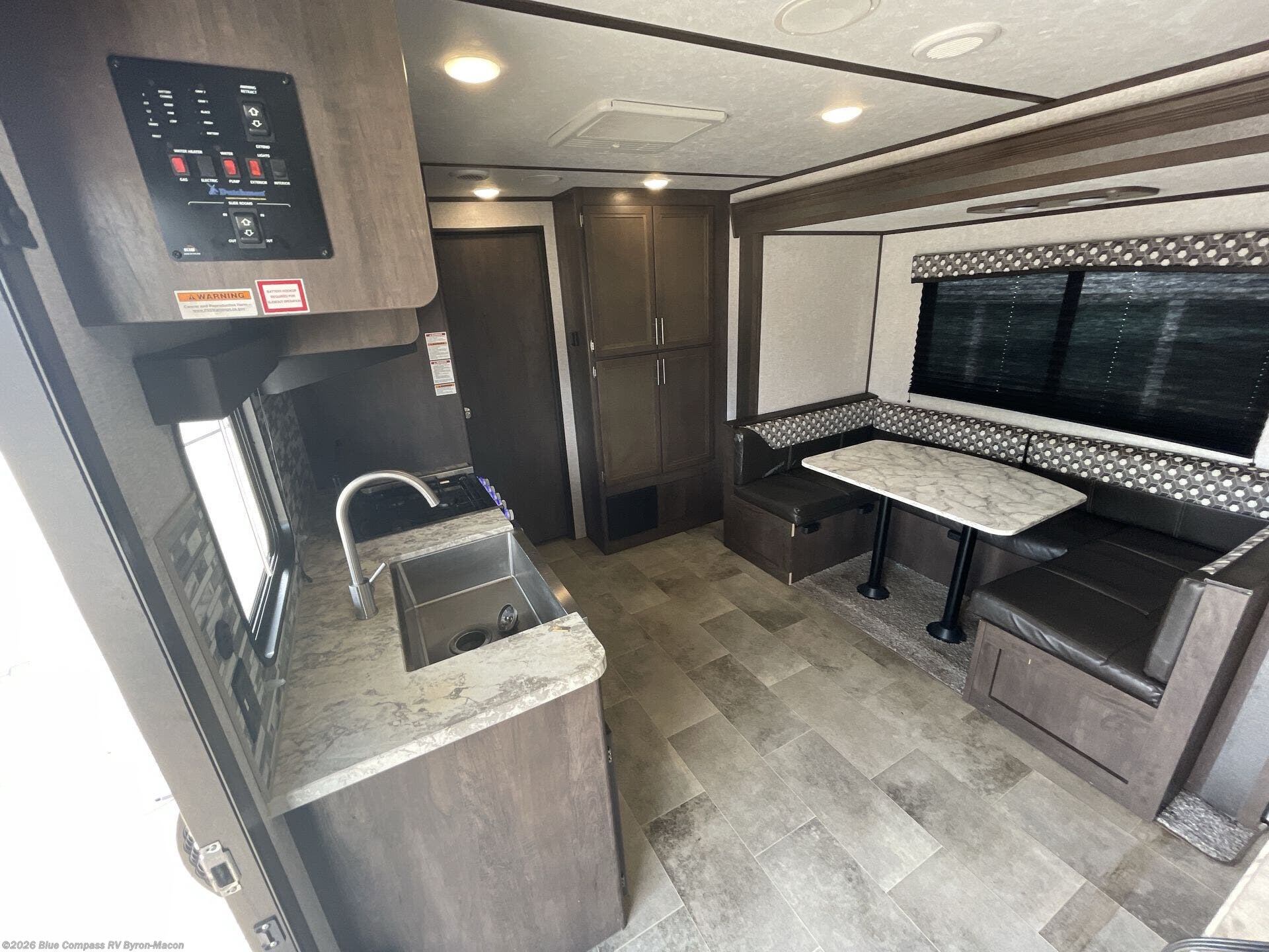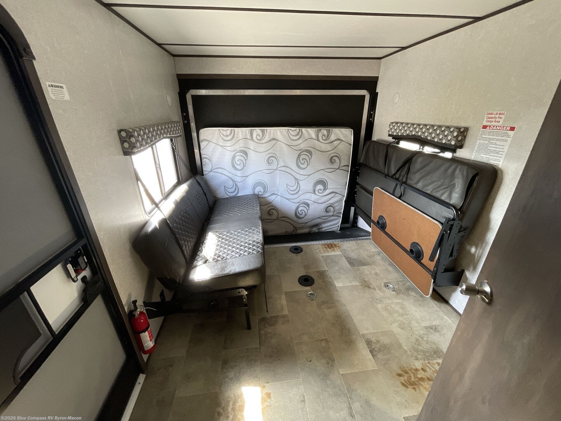 Load your toys and hit the road to your favorite off-road park with this Coleman Lantern Series toy hauler travel trailer behind you. After hitting the trails, you can come back for a nap in the front private bedroom that has USB outlets. You might decide to make a meal or relax at the U-shaped dinette in the living area. The kids or your buddies can sleep on the dual opposing sofas in the cargo area, and everyone can wait their turn to ride the four wheeler or dirt bike while visiting under the 16' power awning with LED lights outside. The walk-through bath is available when you are ready to get cleaned up or need a quick break before heading back outdoors.