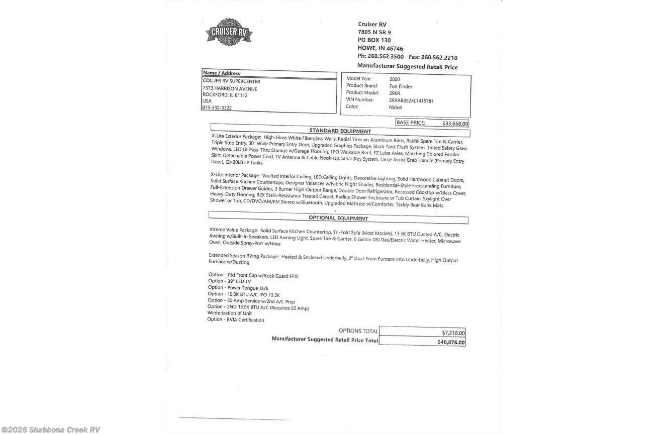 Request More Info on this 2020 Cruiser RV Fun Finder 29KR * Offered for sale by Shabbona Creek RV