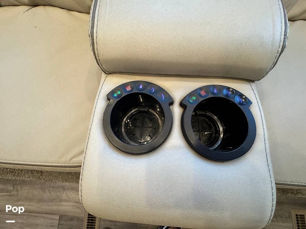 The main living area is designed for relaxation and entertainment. It commonly features theater seating or reclining sofas, a large entertainment center with a flat-screen TV and fireplace, and ample storage throughout. Large windows allow natural light to fill the space, enhancing the open and welcoming atmosphere.